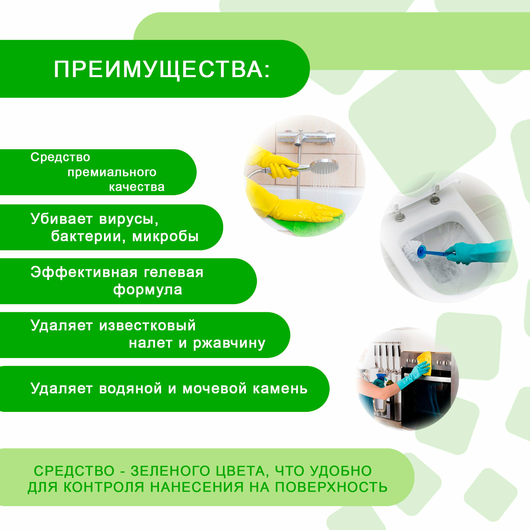 | Плюсы: | Отмывает любые пятна и грязь на плитке и поверхности ванной (чугунная+ эмаль). Отличное средство. |