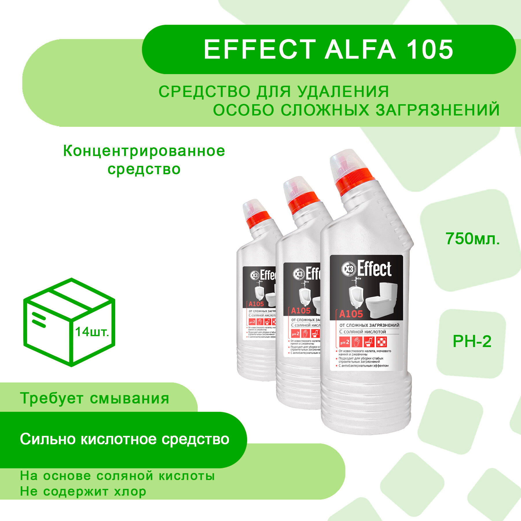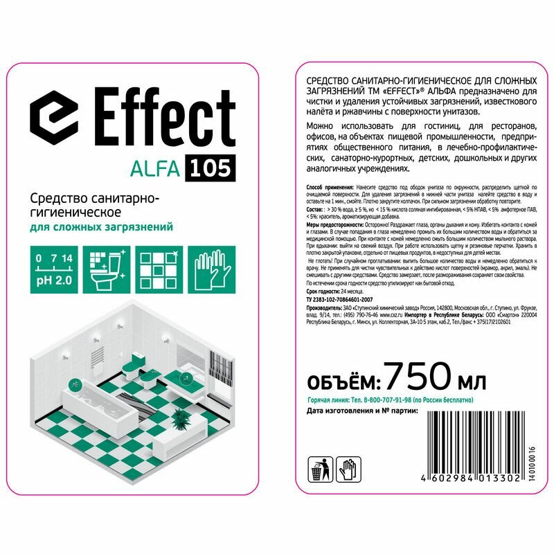 Универсальное чистящее средство Чистящее средство 750 мл EFFECT "Alfa 105", для сантехники, кислотное, для сложных загрязнений, 14321