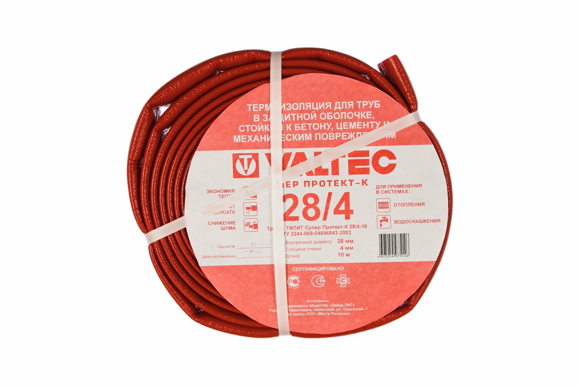 Трубная теплоизоляция VALTEC Супер Протект в красной оболочке 28/4 бухта 10м