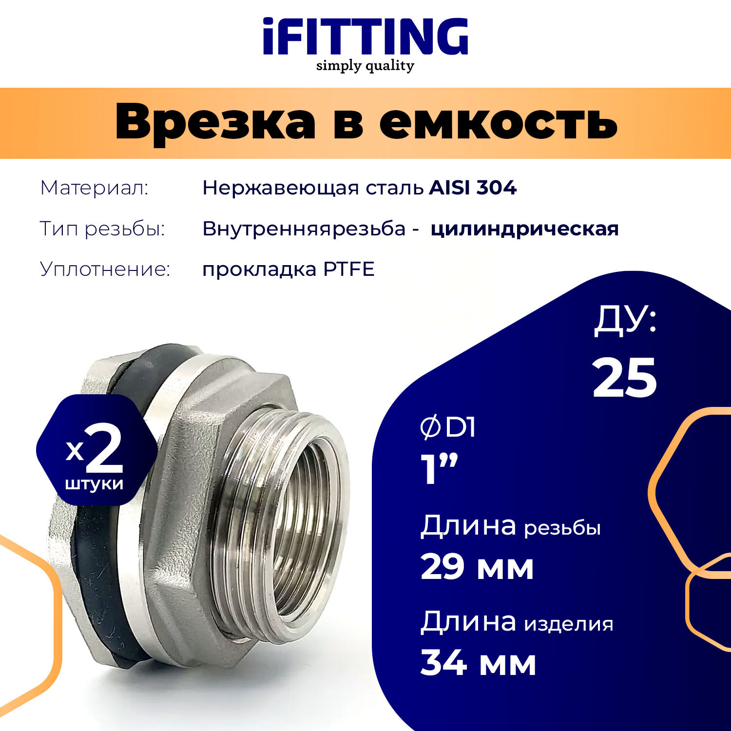 Купить Штуцер (врезка) в бак (емкость) нержавеющий 1" Ду25 (уп. 2 шт.)