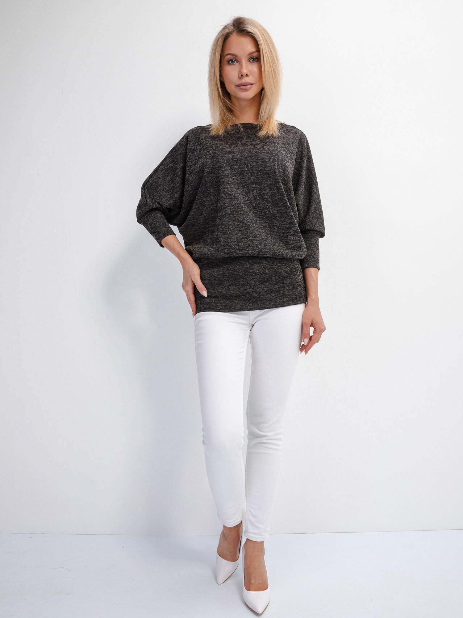 СохранитьДжемпер летучая мышь, черный меланж, 56 интересное:
