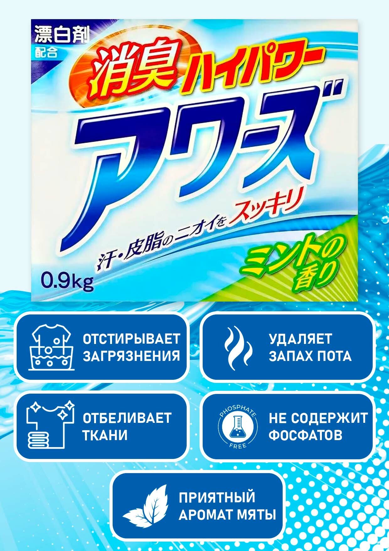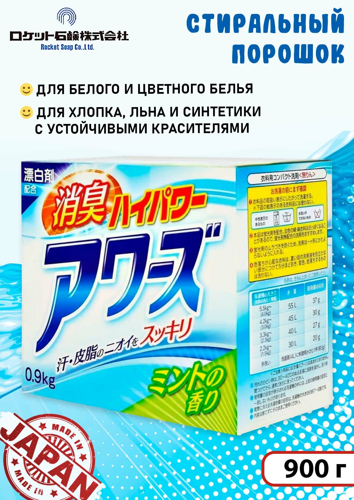 ROCKET SOAP Порошок стиральный AWAS EX с мятным ароматом, 900 г