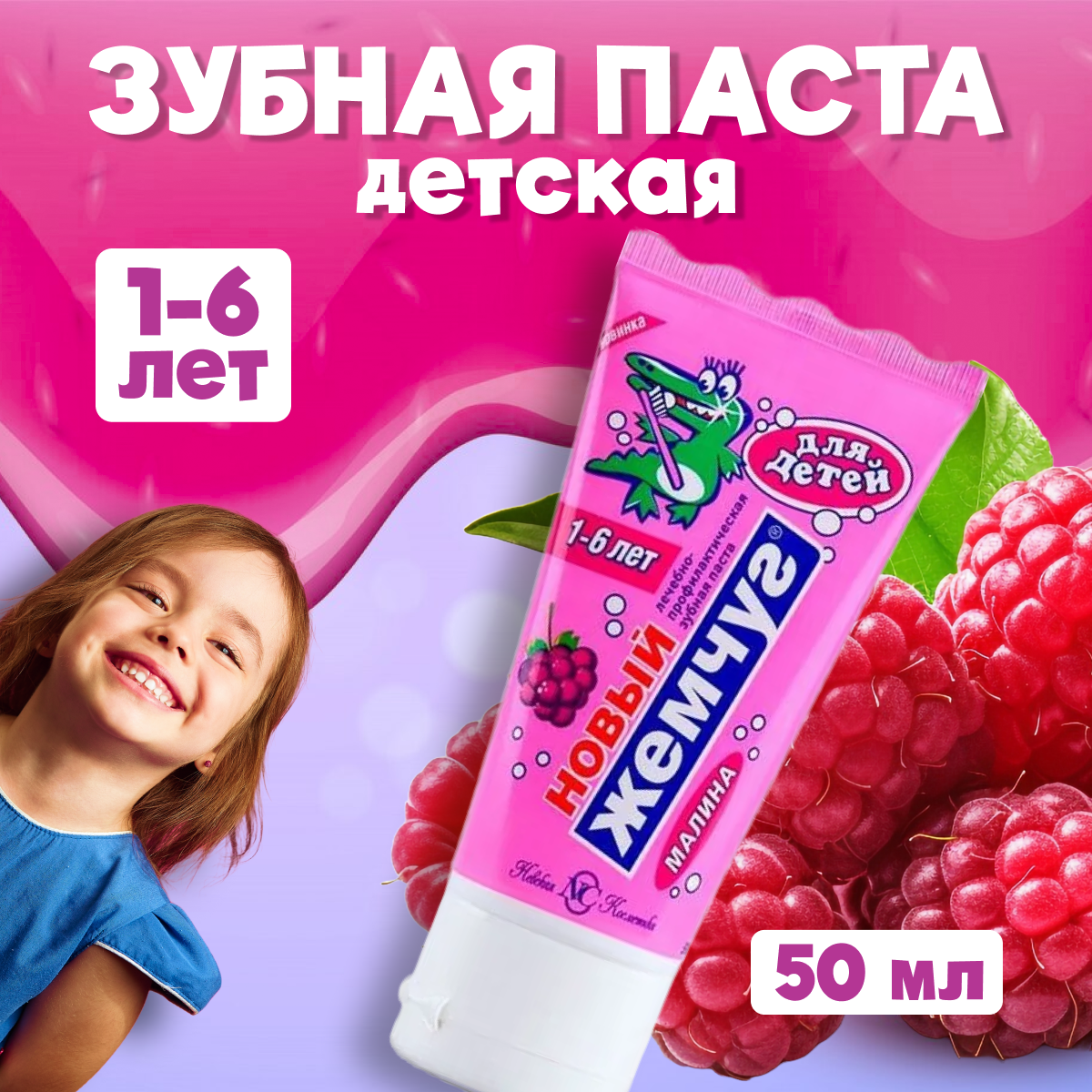 З/п новый жемчуг 50мл Малина 1-6 лет дет. вертикальная туба