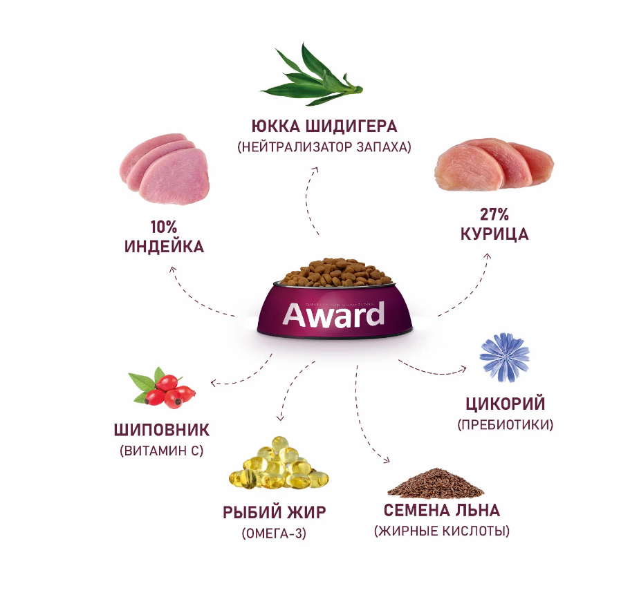 Сухой корм AWARD Healthy growth для котят от 1 месяца, беременных и кормящих кошек с индейкой и курицей с добавлением рыбьего жира и семян льна 1,5кг интересное: