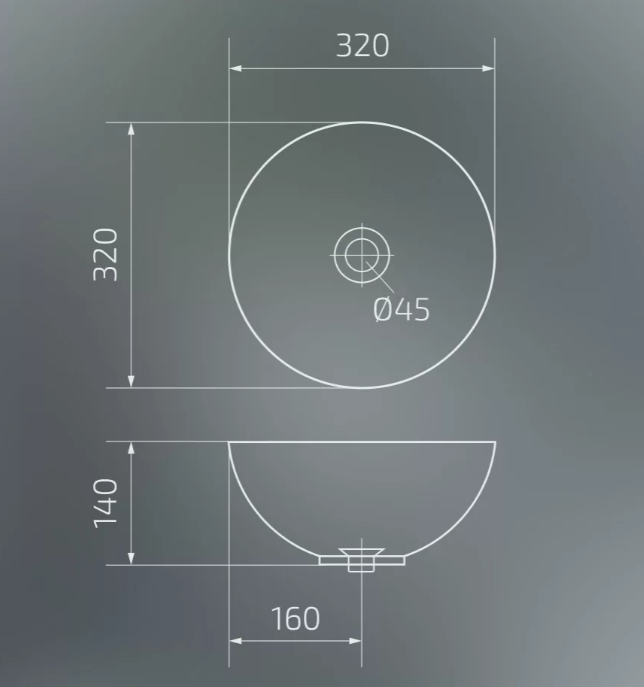 Накладная раковина серая 32x32х13 см, Gid, Mnc486