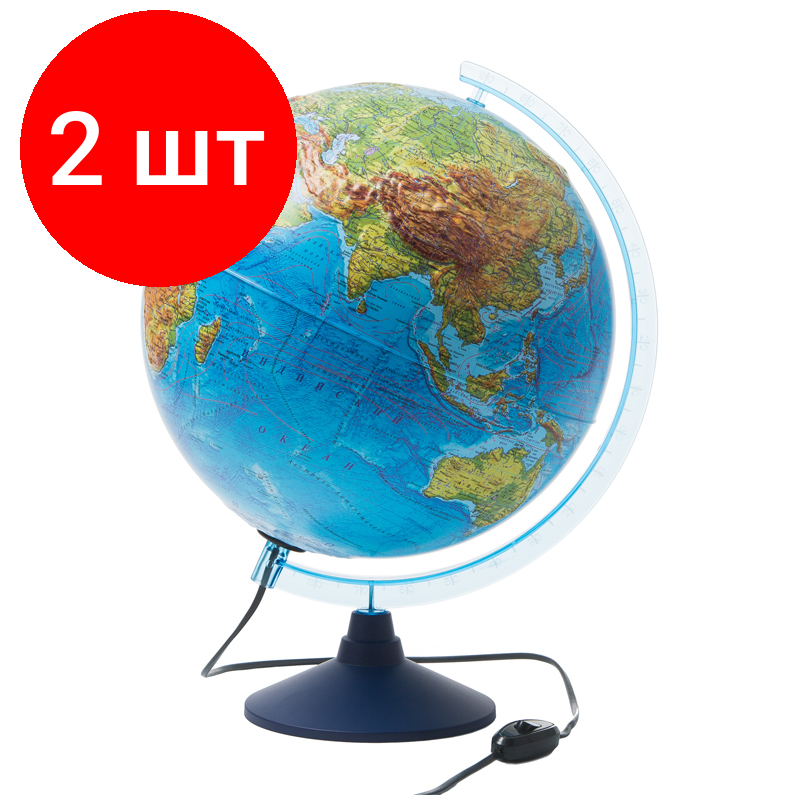 Купить Комплект 2 шт, Глобус физико-политический рельефный Globen, 32см, с подсветкой на круглой подставке