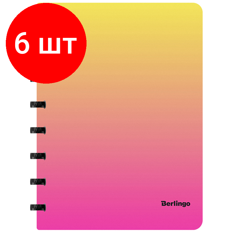 Купить Комплект 6 шт, Бизнес-тетрадь А5+, 80л., Berlingo "Radiance", клетка, на кольцах, с возм. замены блока, 80г/м2, пластик. обложка 700мкм, линейка-закладка, желт./роз.