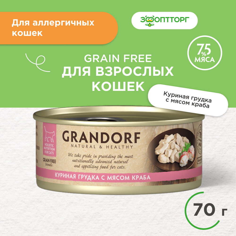 Влажный корм для кошек Grandorf, куриная грудка с мясом краба для всех возрастов, 70 г