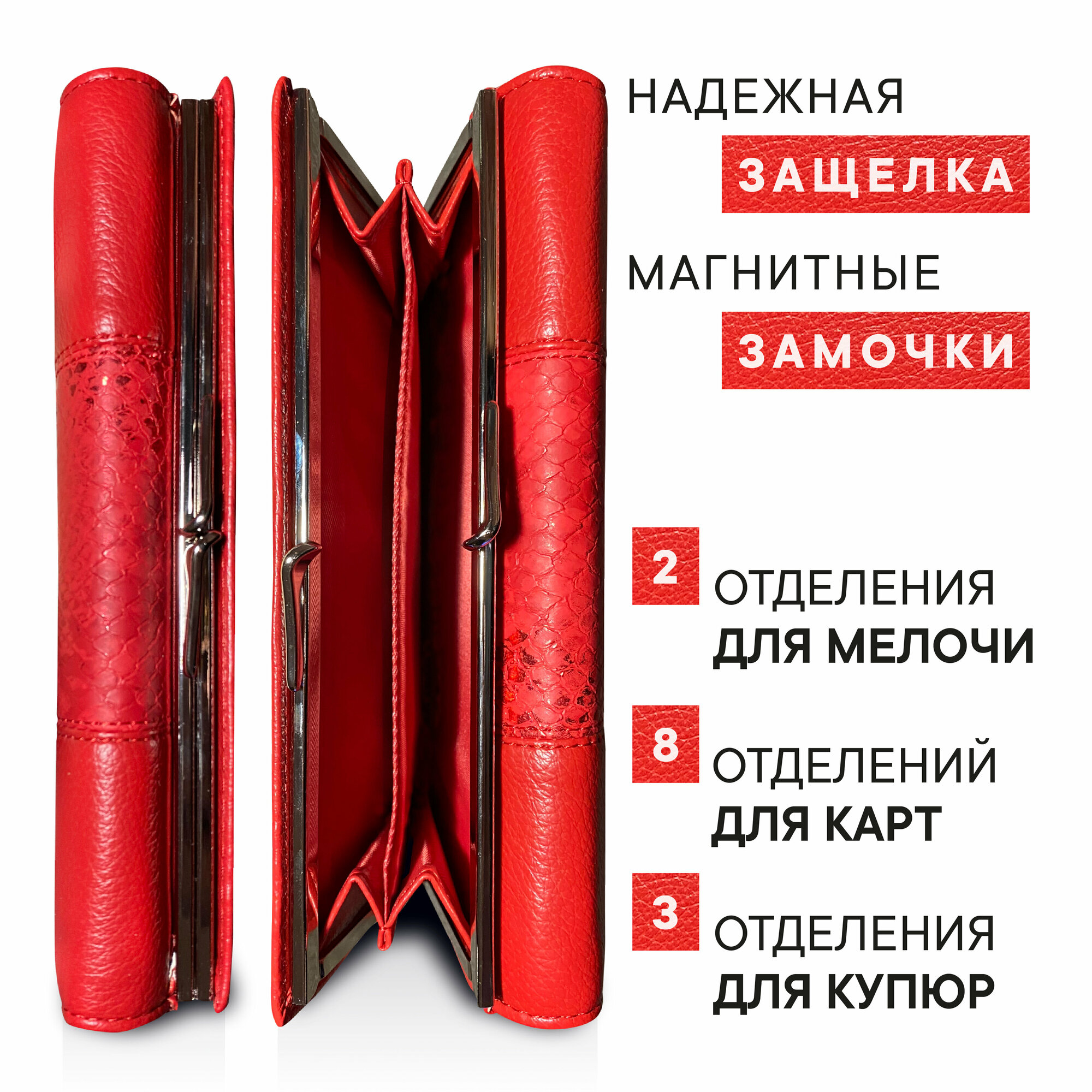 Кошелек женский из эко кожи красный интересное: