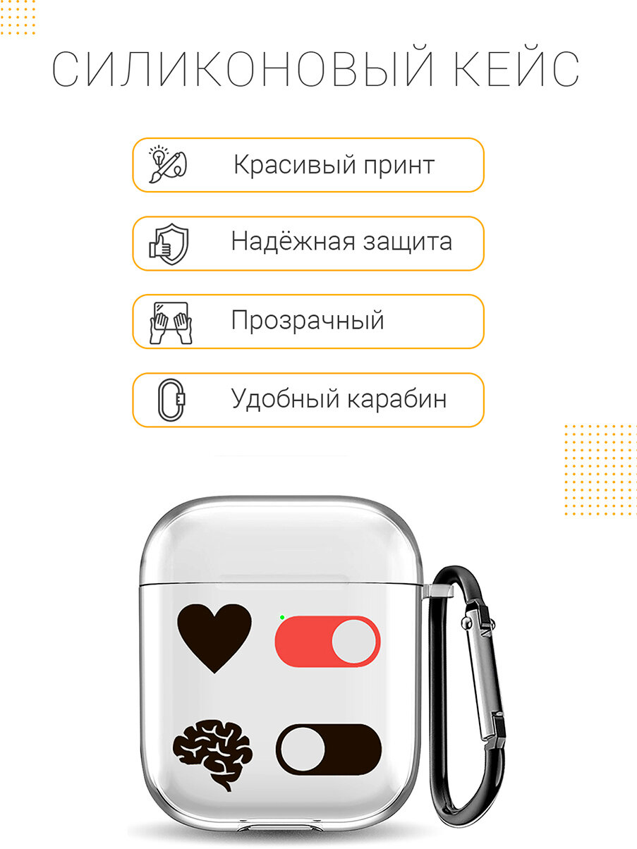 Прозрачный чехол для наушников Apple AirPods 1 / 2 с 3D принтом "Brain Plus Heart"