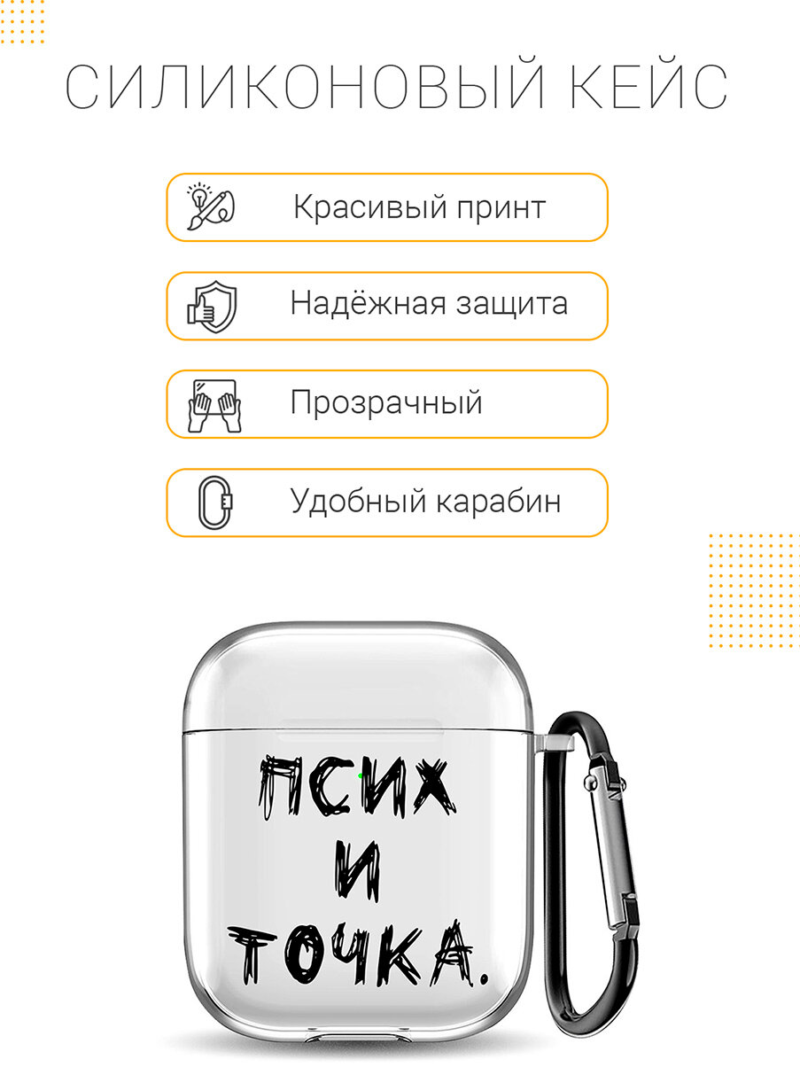 Прозрачный чехол для наушников Apple Airpods 1 / 2 силиконовый с 3D принтом "Psycho"