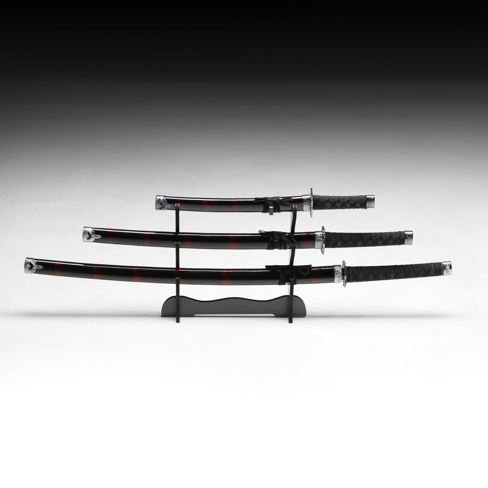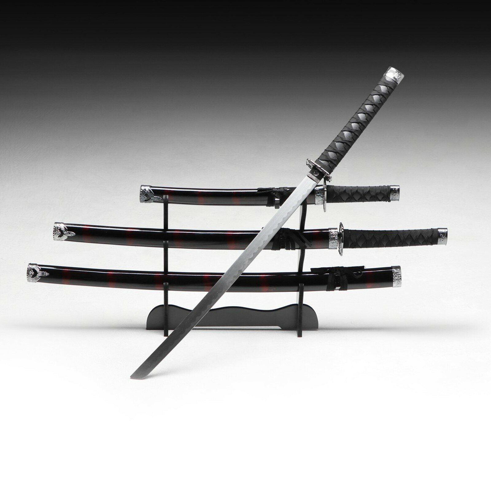 Сув. изделие катаны 3в1 на подставке, ножны дерево, черные с дымкой бордо глянец 54/81/100см 740306