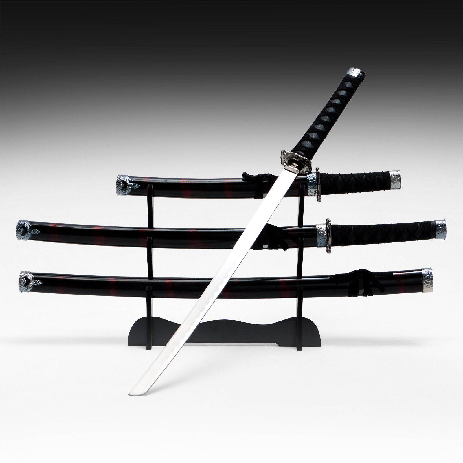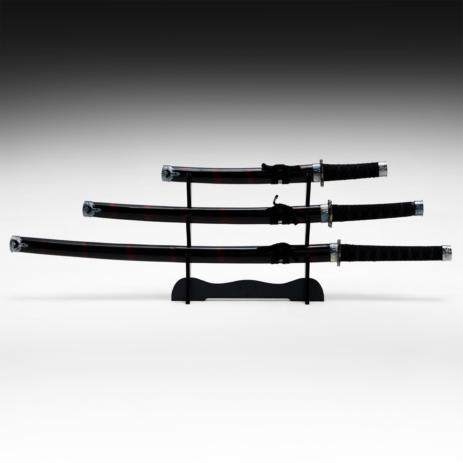 Купить Сув. изделие катаны 3в1 на подставке, ножны дерево, черные с дымкой бордо глянец 54/81/100см