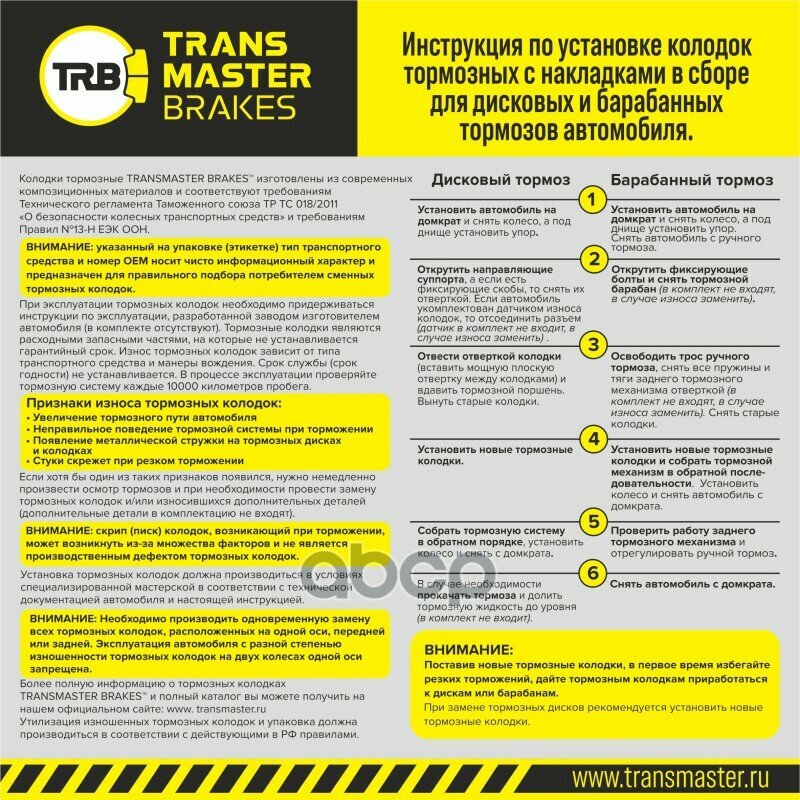 Колодки Стояночного Тормоза TRANSMASTER арт. TH139 интересное: