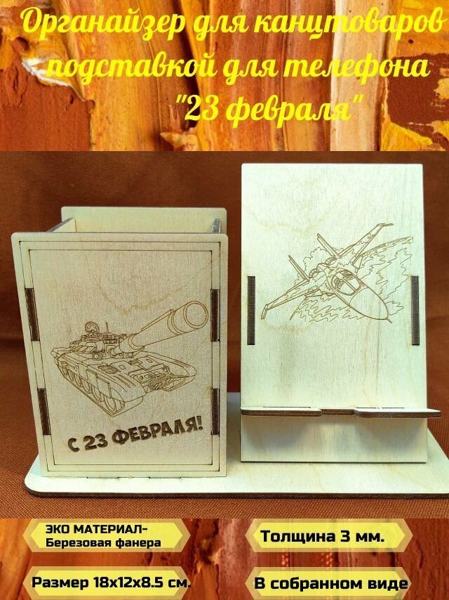 Органайзер для канцтоваров с подставкой для телефона"23 февраля" интересное: