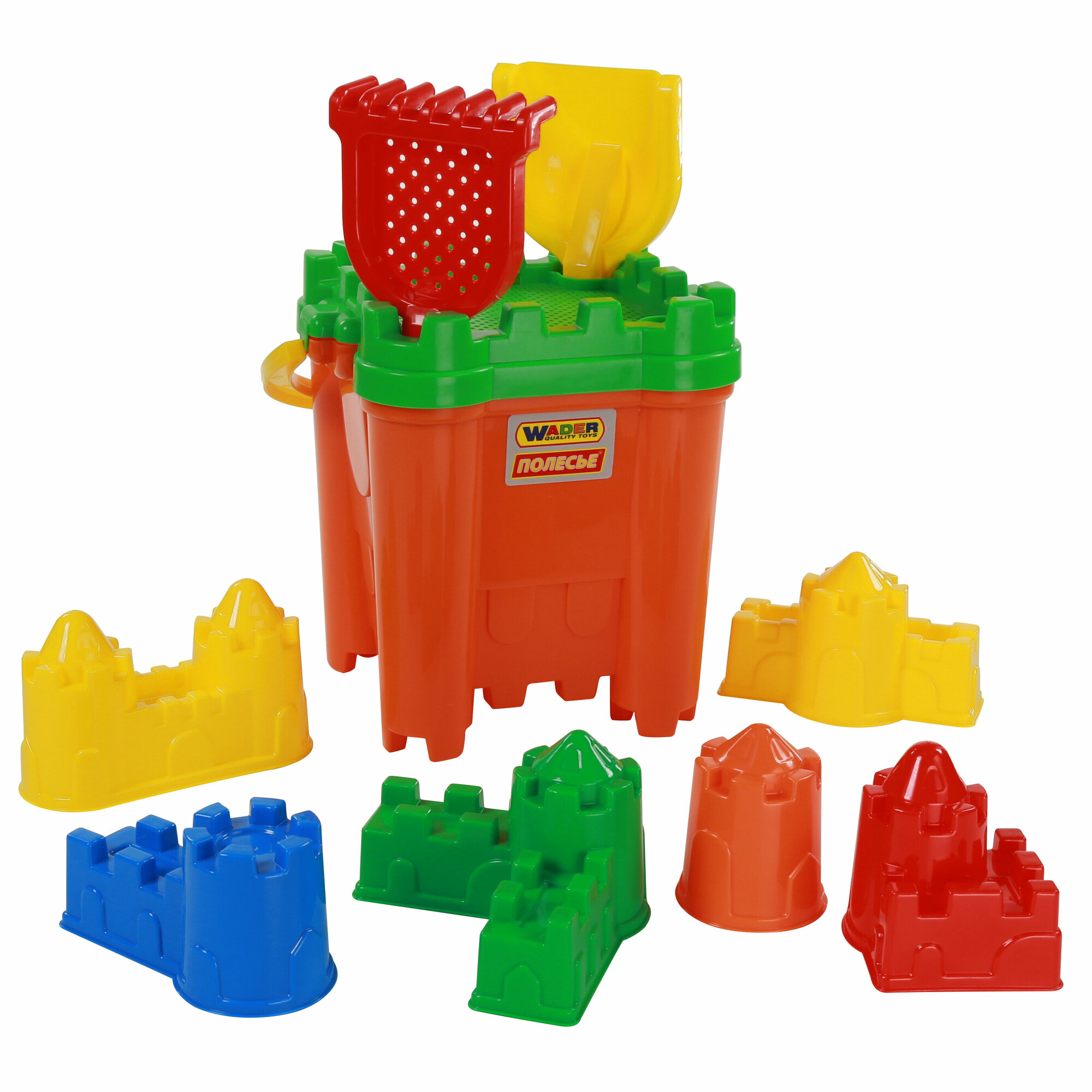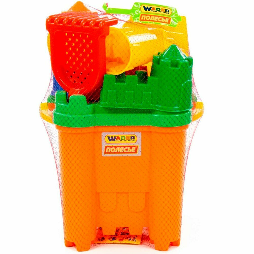 Набор для песочницы полесье №470 ведро-крепость "Макси", сито-крепость "Макси", лопатка №30, грабельки №30, формочки 6 шт