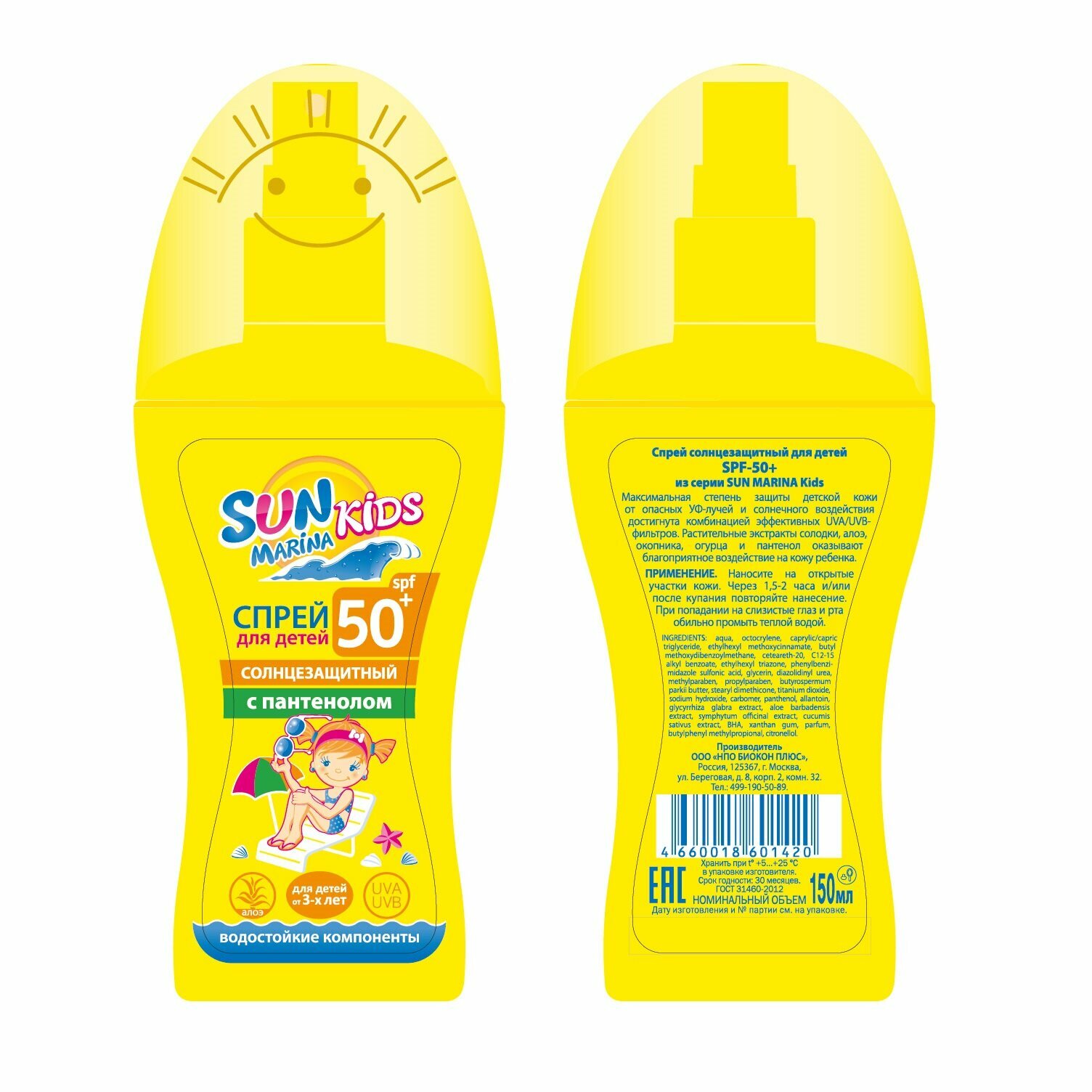 Детский Спрей для безопасного загара SUN MARINA KIDS SPF-50+, 150 мл