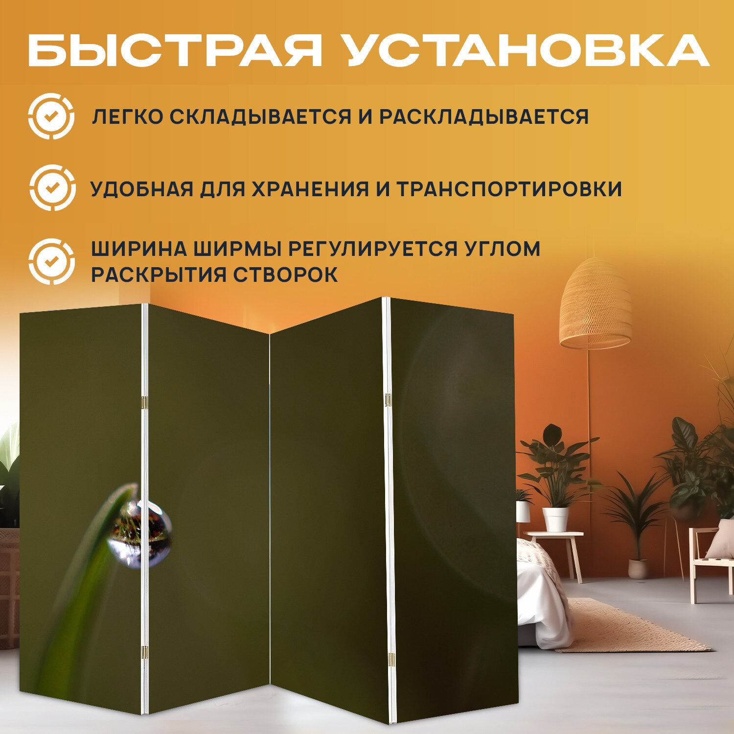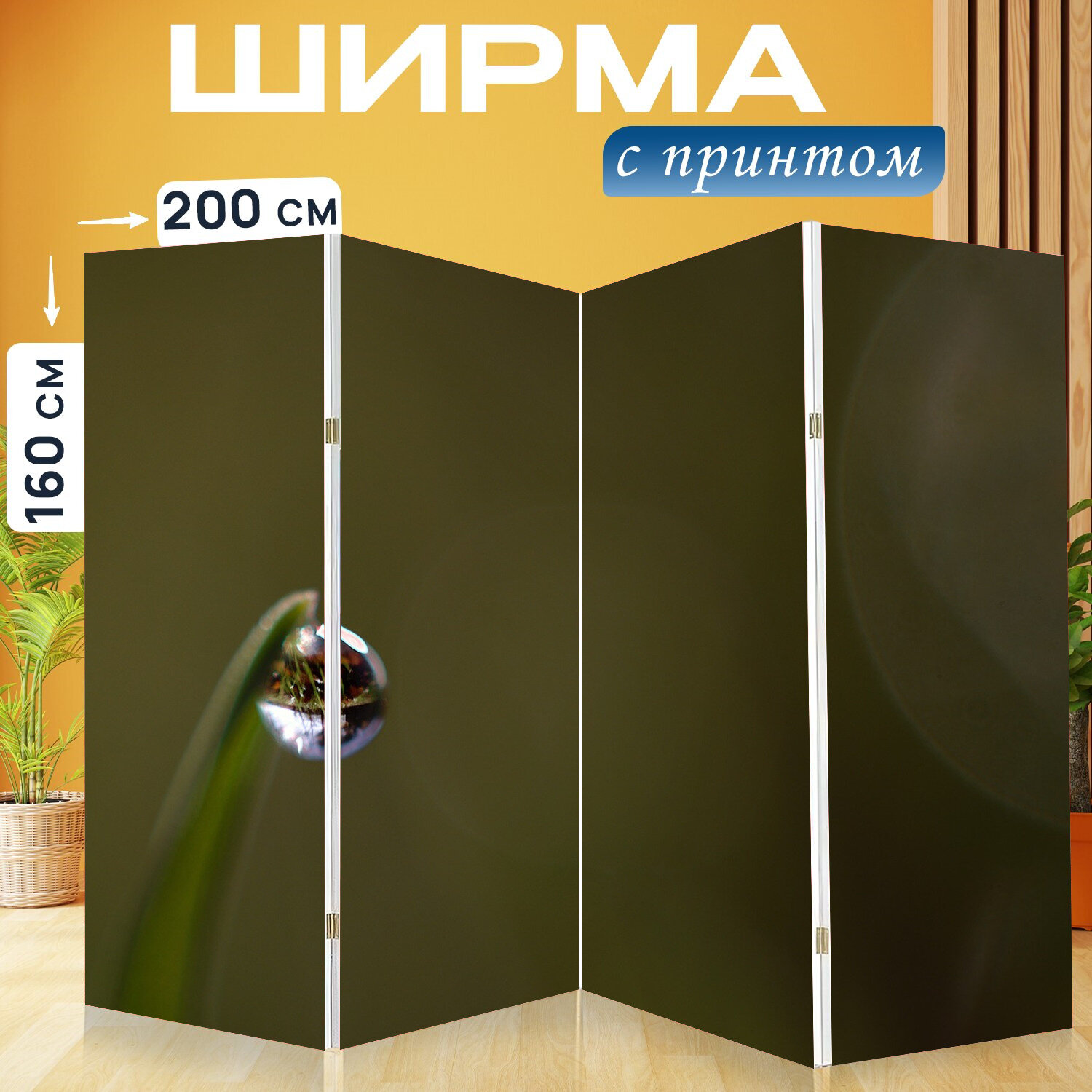 Ширма перегородка с принтом "Роса, капли, капля росы" на холсте - 200x160 см. для зонирования, раскладная интересное: