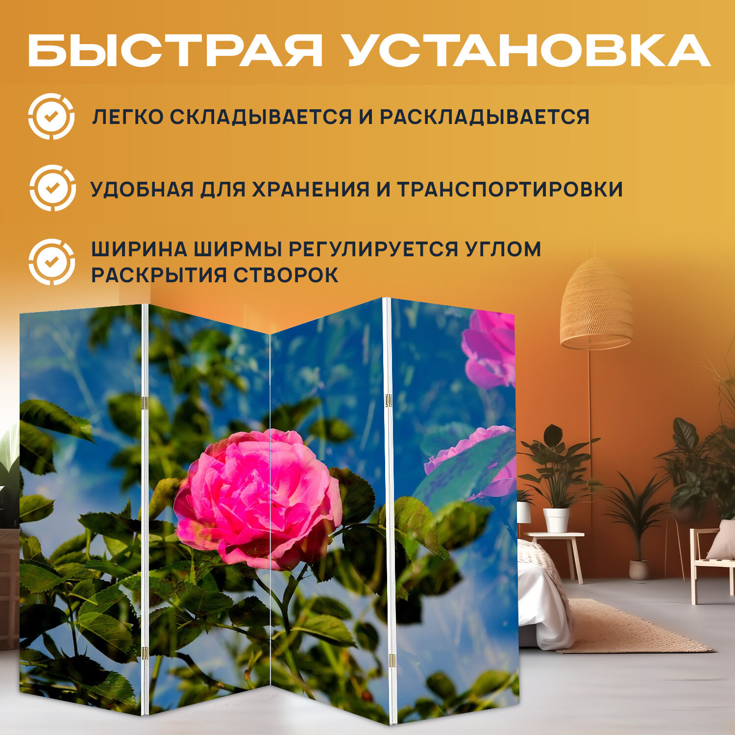 Купить Ширма перегородка с принтом "Роза, многократная экспозиция, красный" на холсте - 200x160 см. для зонирования, раскладная