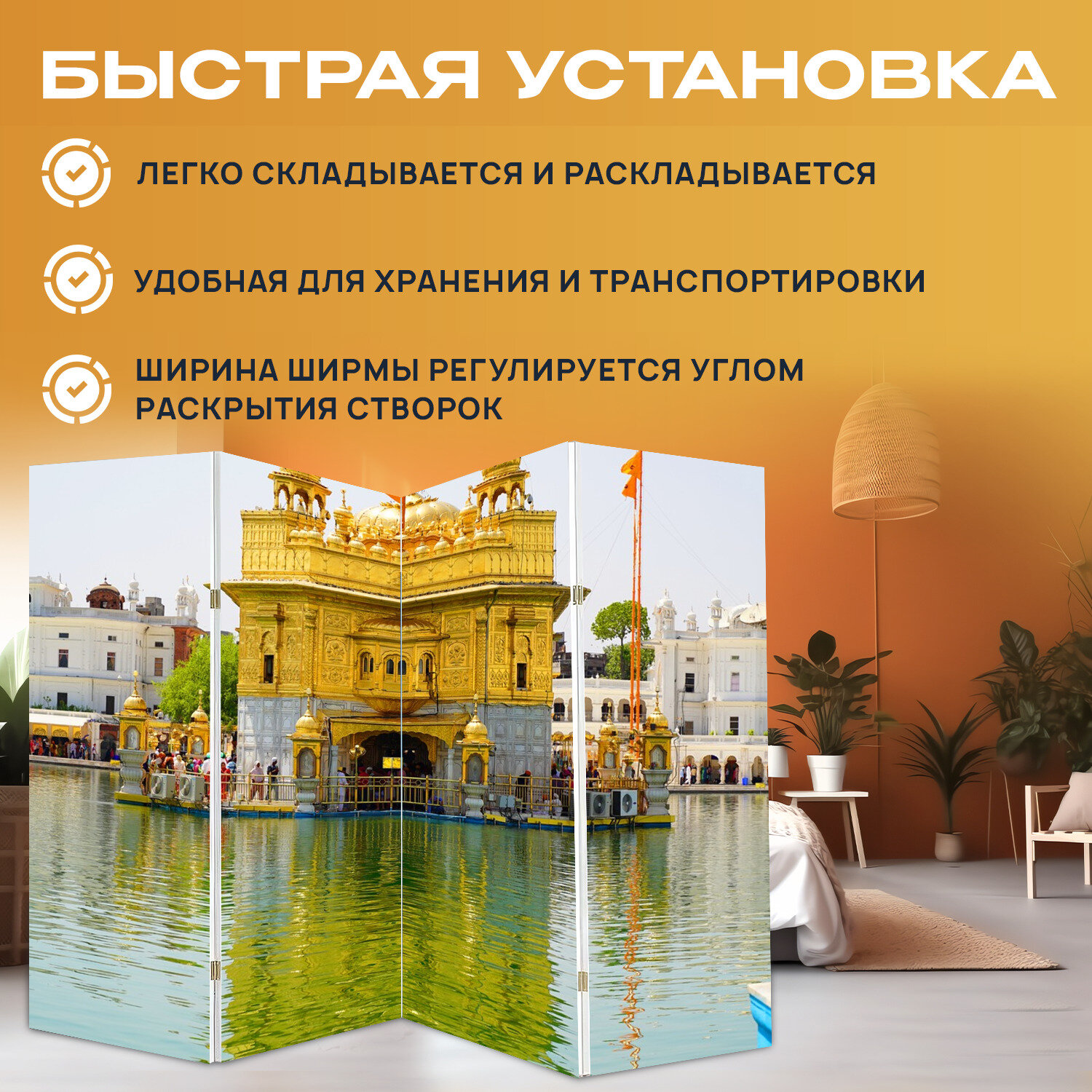 Ширма перегородка с принтом "Архитектуры, индийский, поклонение" на холсте - 200x160 см. для зонирования, раскладная интересное: