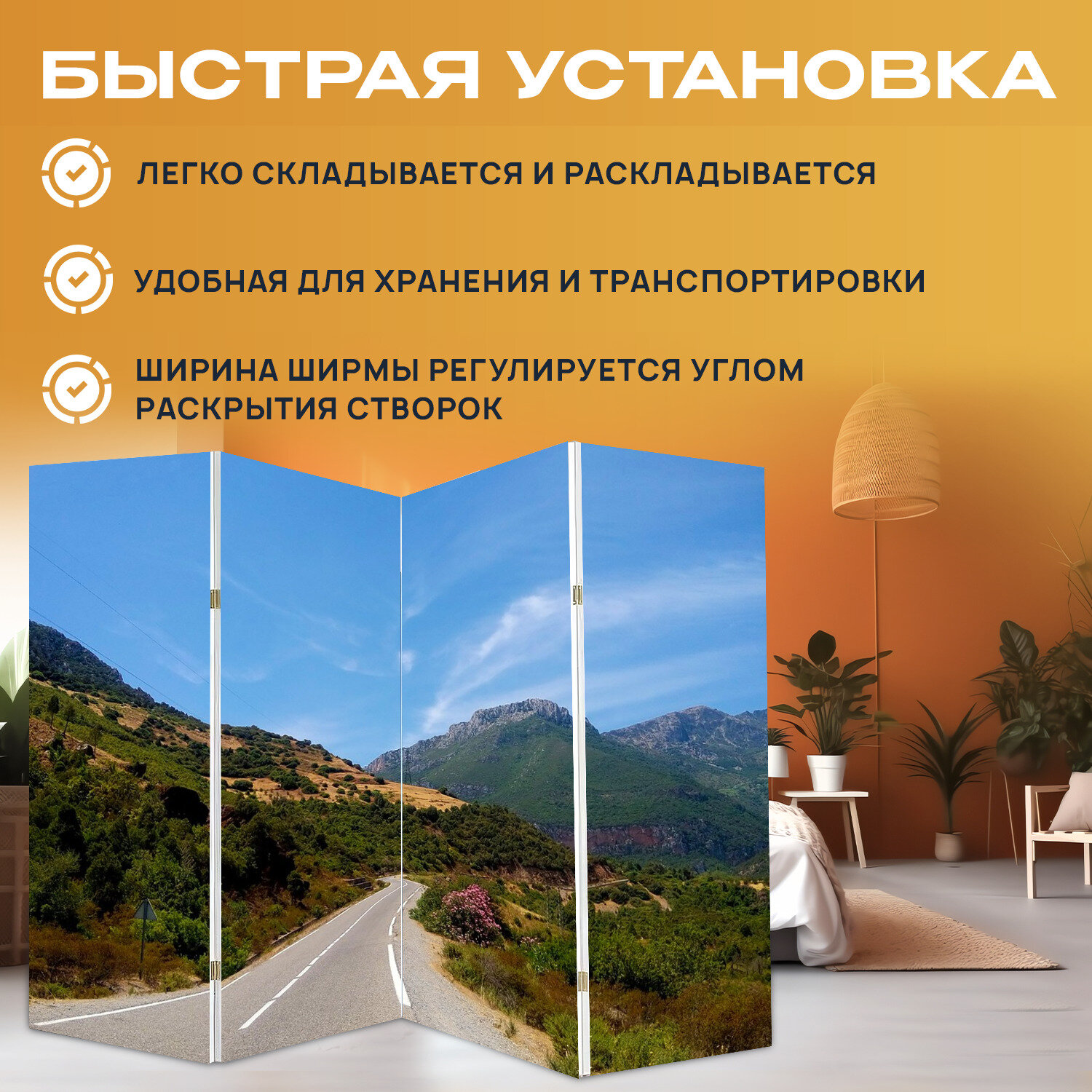Купить Ширма перегородка с принтом "Риф, к северу, марокко" на холсте - 200x160 см. для зонирования, раскладная