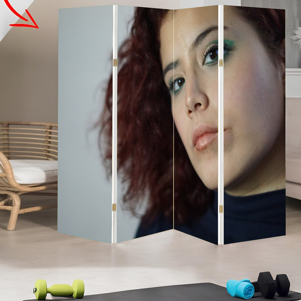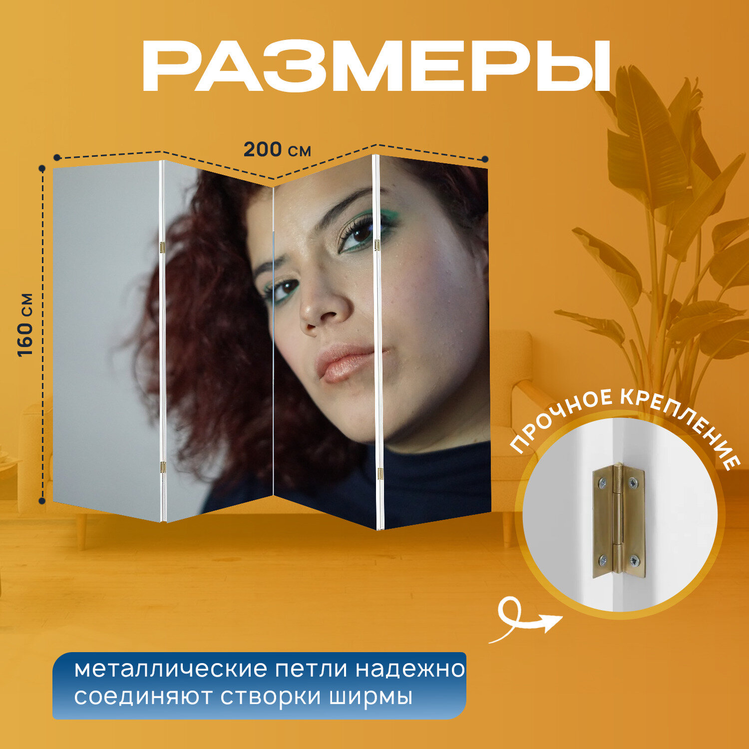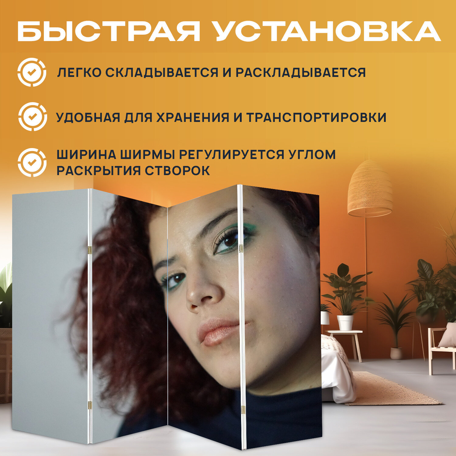 Ширма перегородка с принтом "Портрет, женщина, модель" на холсте - 200x160 см. для зонирования, раскладная интересное: