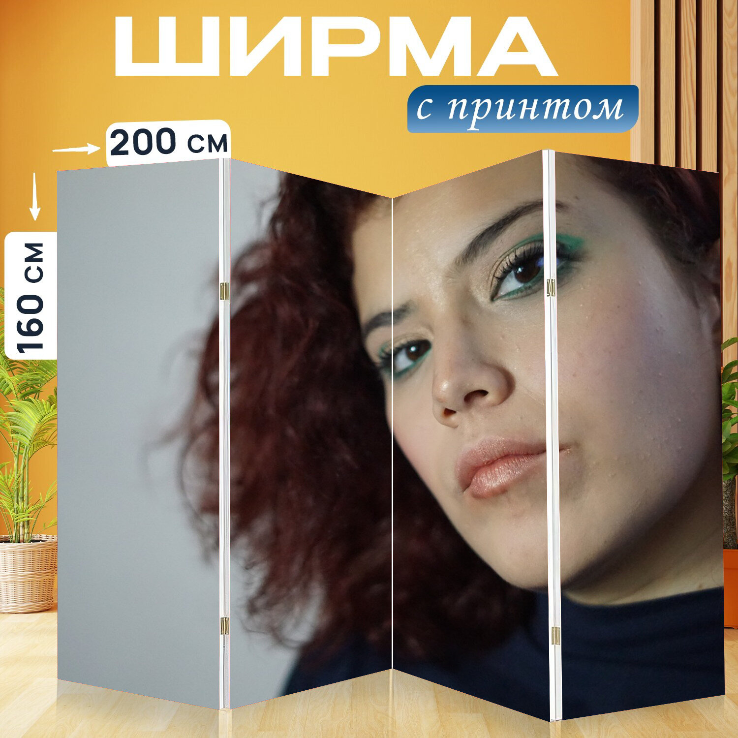 Купить Ширма перегородка с принтом "Портрет, женщина, модель" на холсте - 200x160 см. для зонирования, раскладная