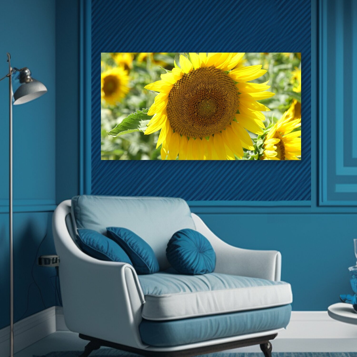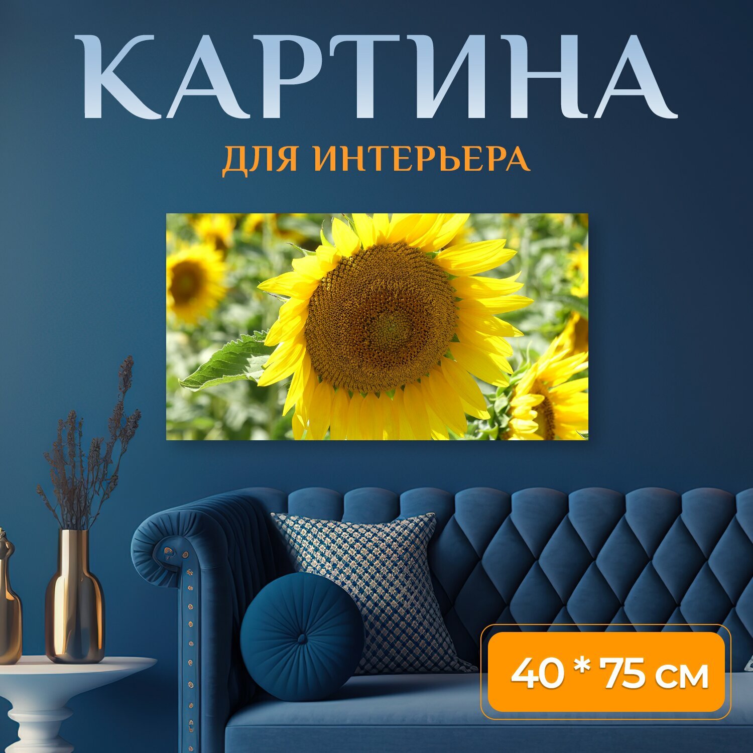 Картина на холсте "Подсолнух, цвести, желтый" на подрамнике 75х40 см. для интерьера интересное: