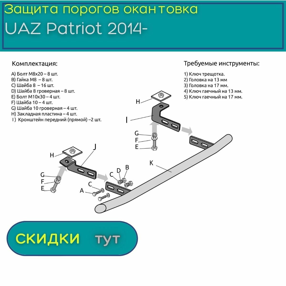 Защита порогов PT GROUP для UAZ Patriot 2014-н.в. (УАЗ Патриот) окантовка искра ППК 51 мм интересное: