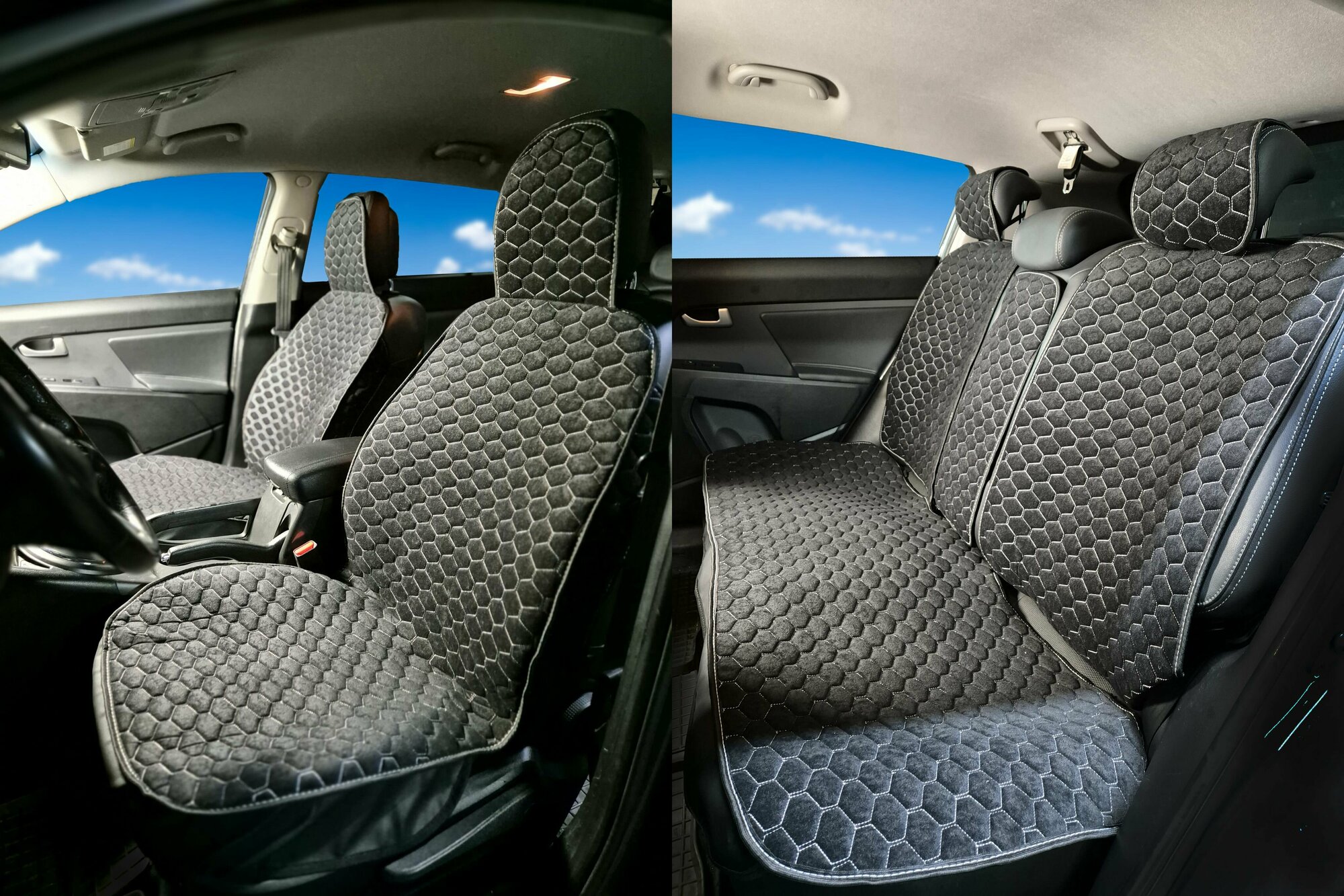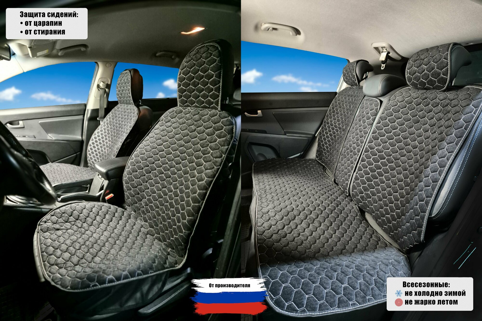 Накидки для Хендай Акцент (1999 - 2012) хэтчбек 5 дверей / Hyundai Accent на весь салон G-Soty, Велюр, Черный с серой строчкой интересное: