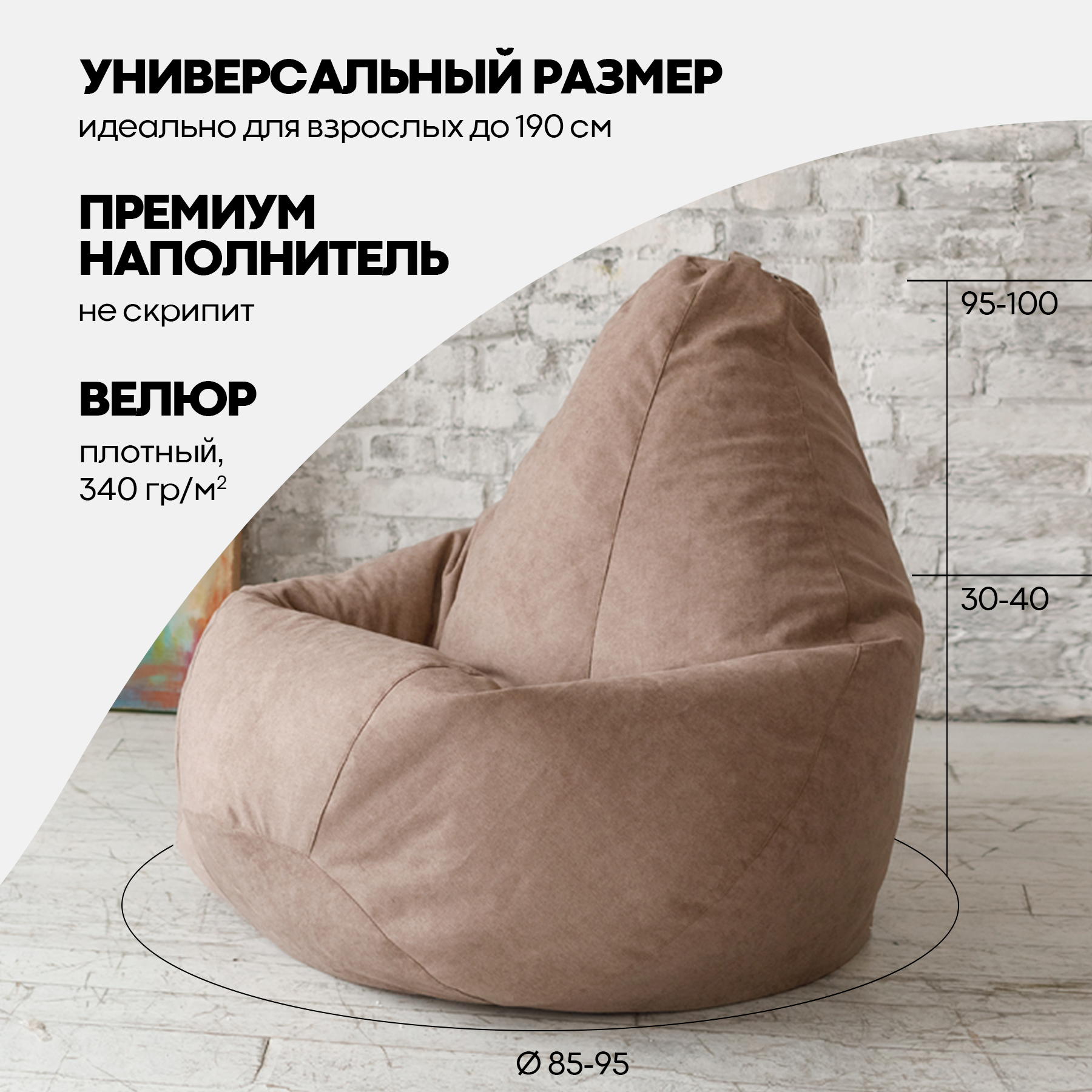 Купить Кресло Мешок Груша Бежевый Велюр (3XL, Классический)