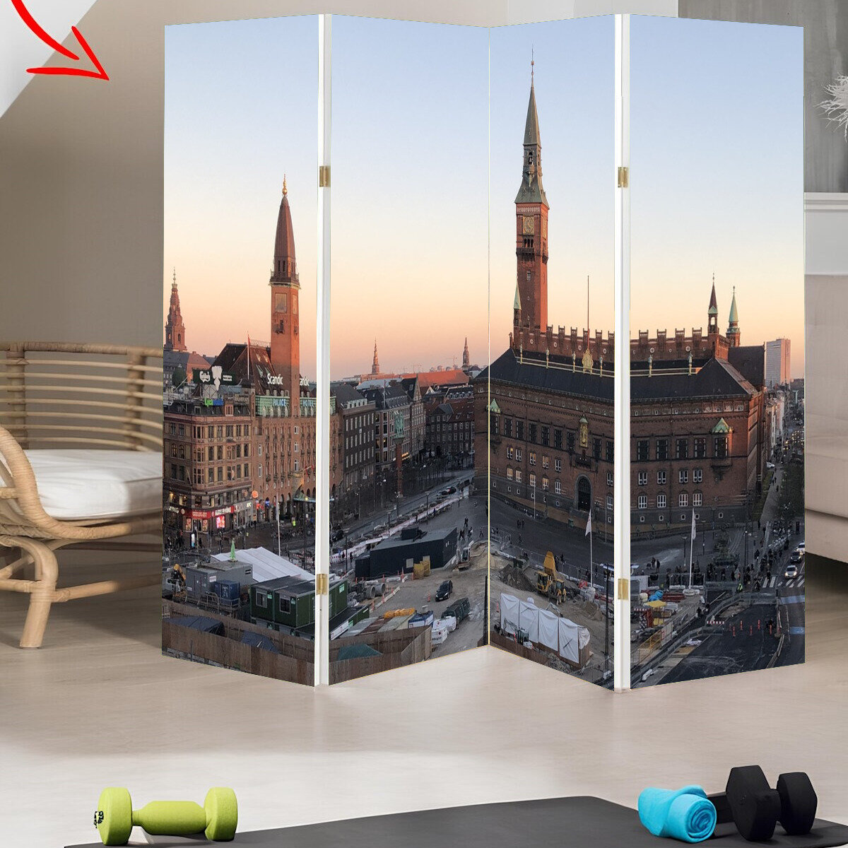 Ширма перегородка с принтом "Копенгаген, мэрия, летом" на холсте - 200x160 см. для зонирования, раскладная интересное: