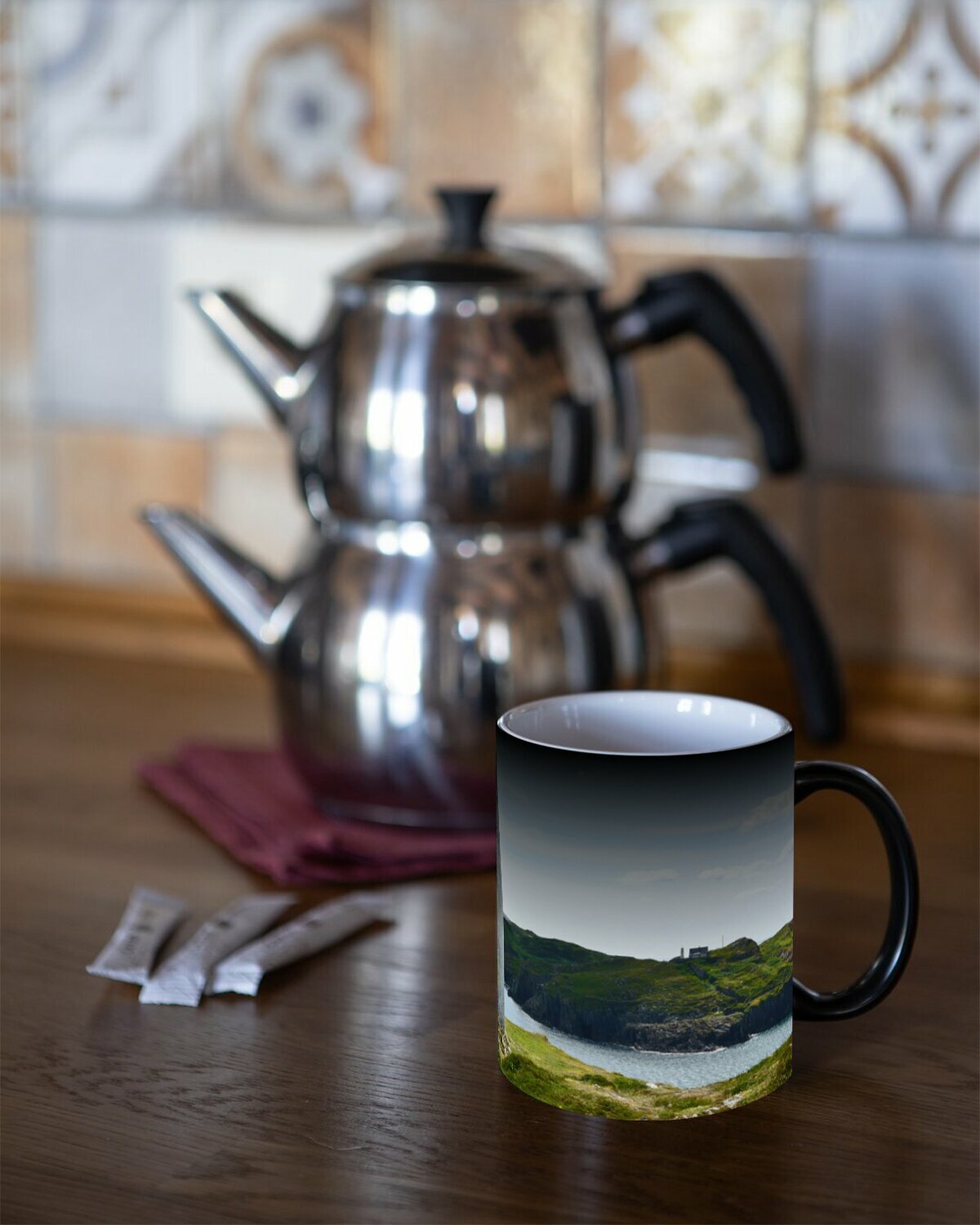 Купить Кружка хамелеон с принтом "Ориентир, маяк, залив" 330 мл.