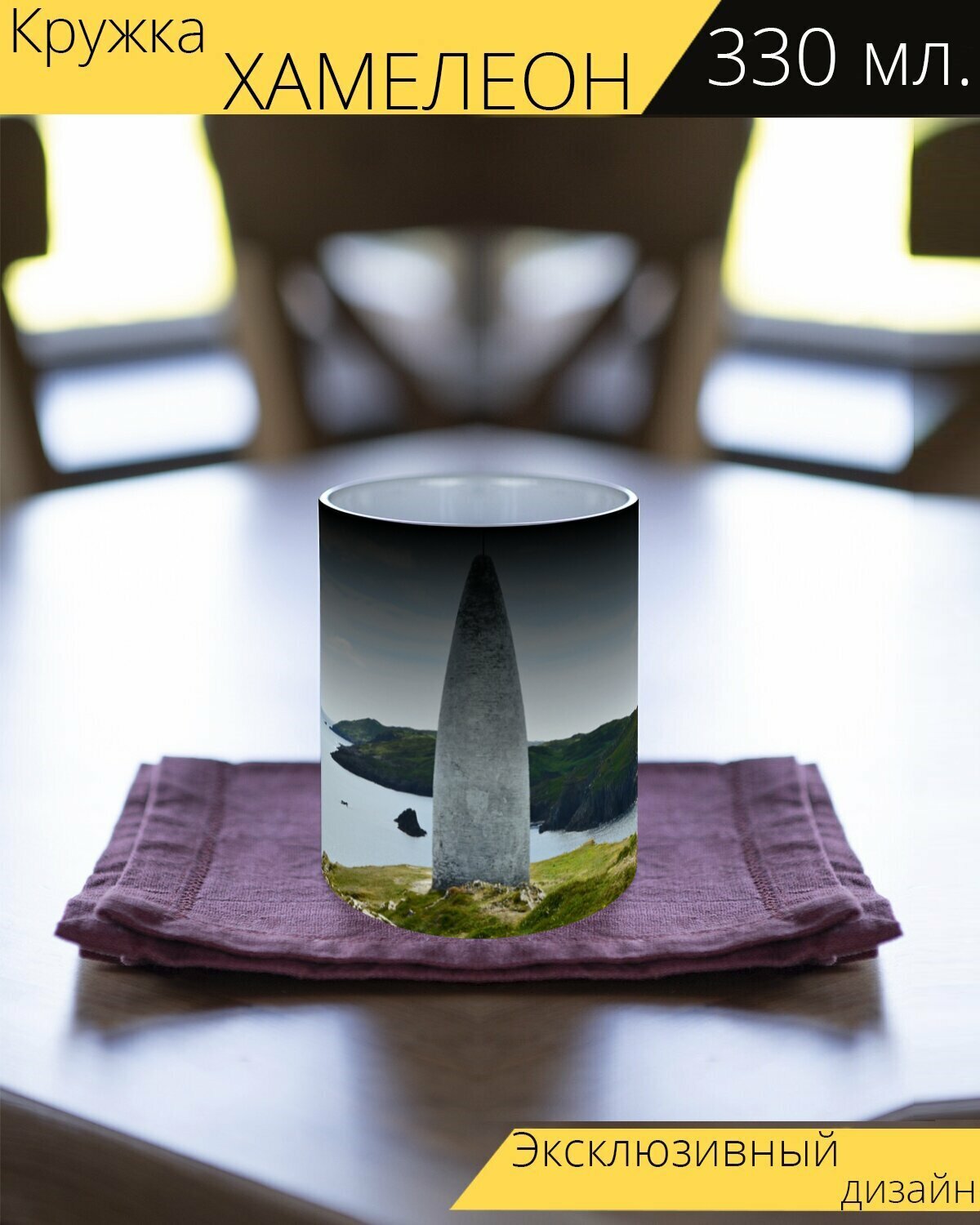 Кружка хамелеон с принтом "Ориентир, маяк, залив" 330 мл. интересное: