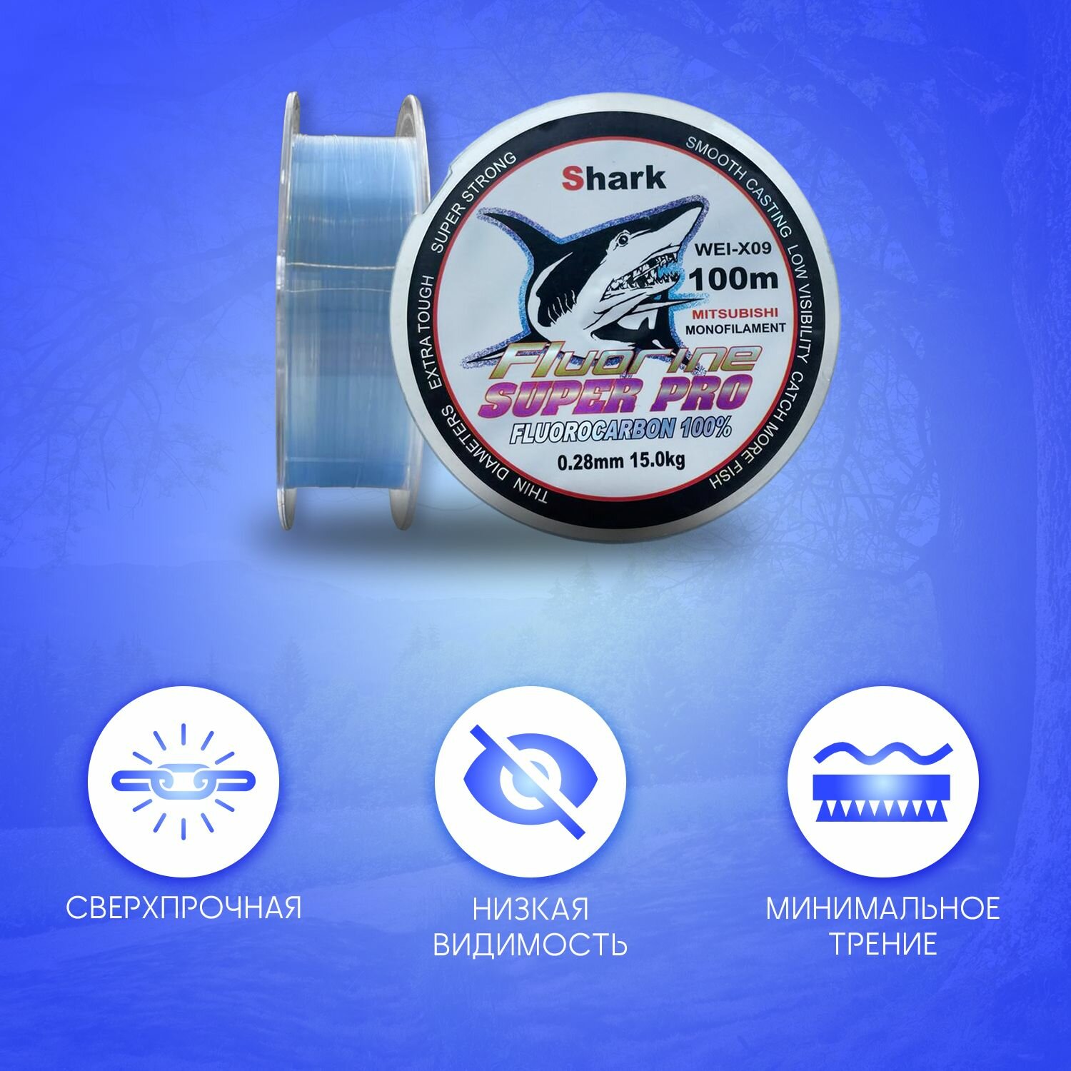 Купить Леска Флюорокарбоновая Shark 100м, 0.28 мм, 15 кг голубая