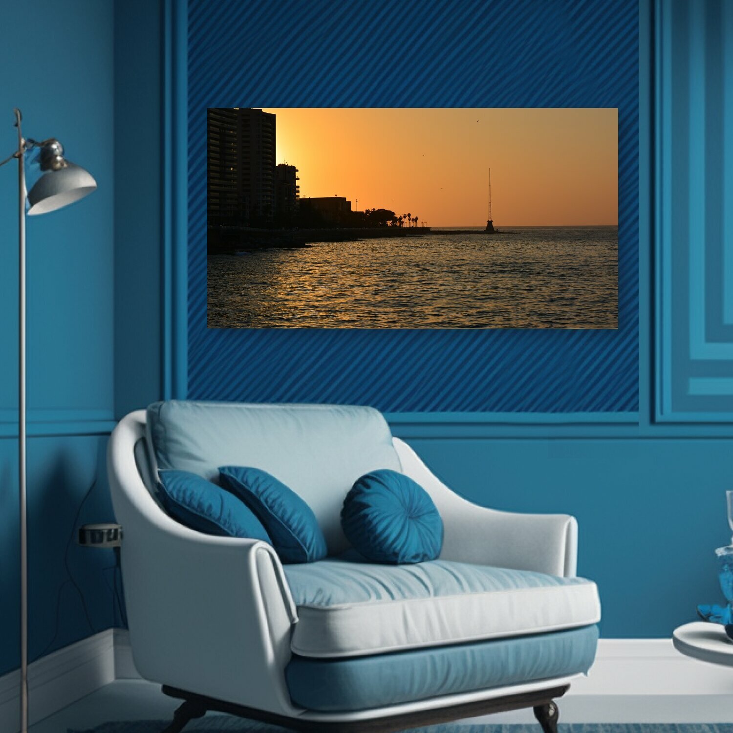 Картина на холсте "Апельсин, заход солнца, бейрут" на подрамнике 75х40 см. для интерьера интересное: