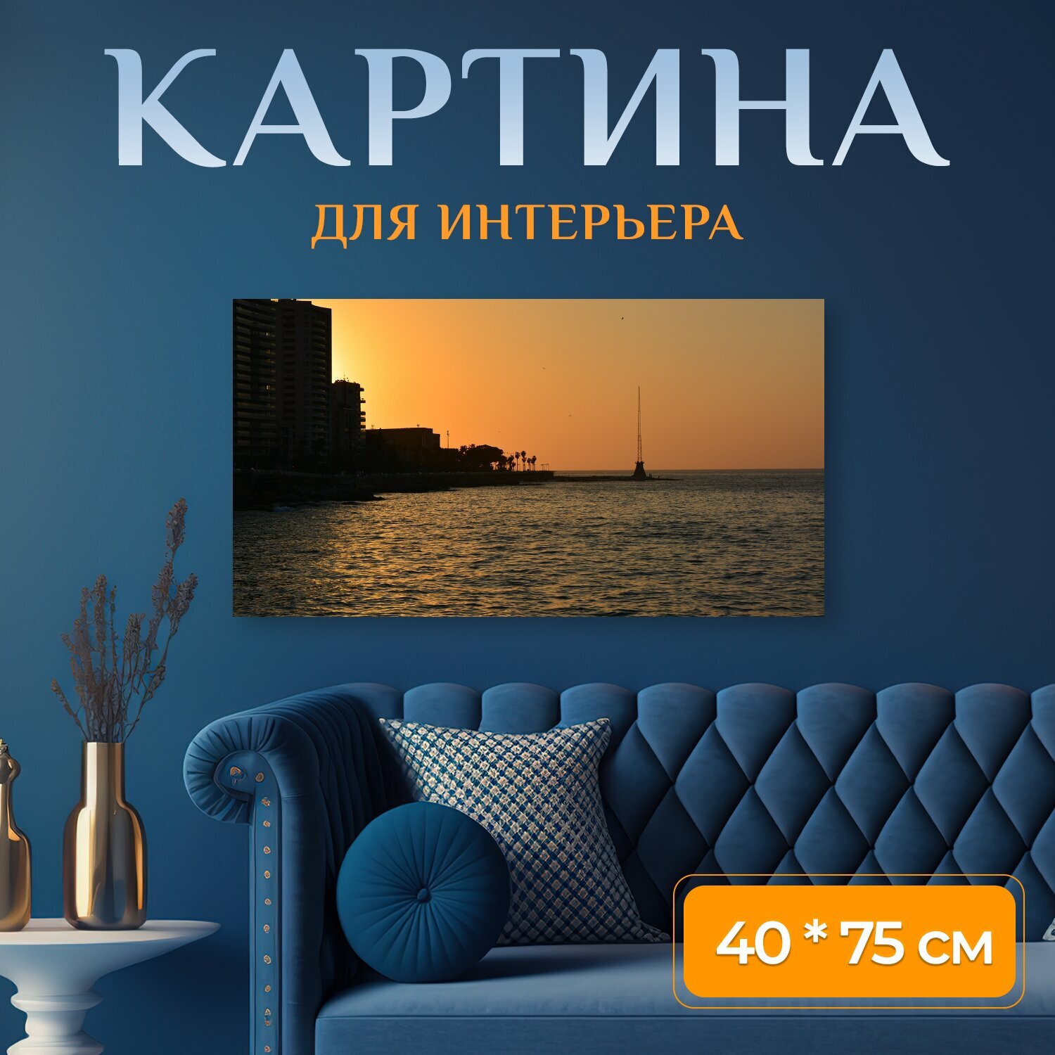 Купить Картина на холсте "Апельсин, заход солнца, бейрут" на подрамнике 75х40 см. для интерьера