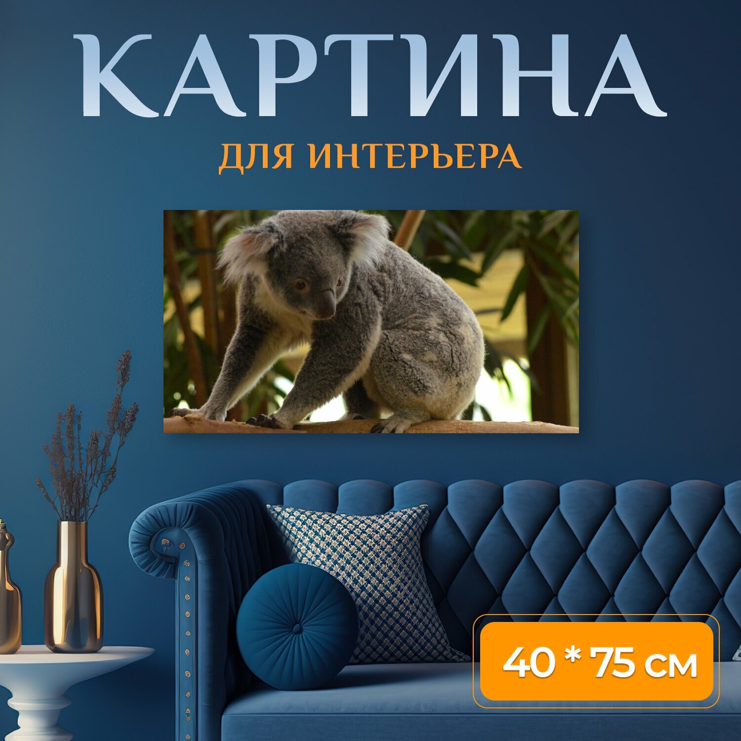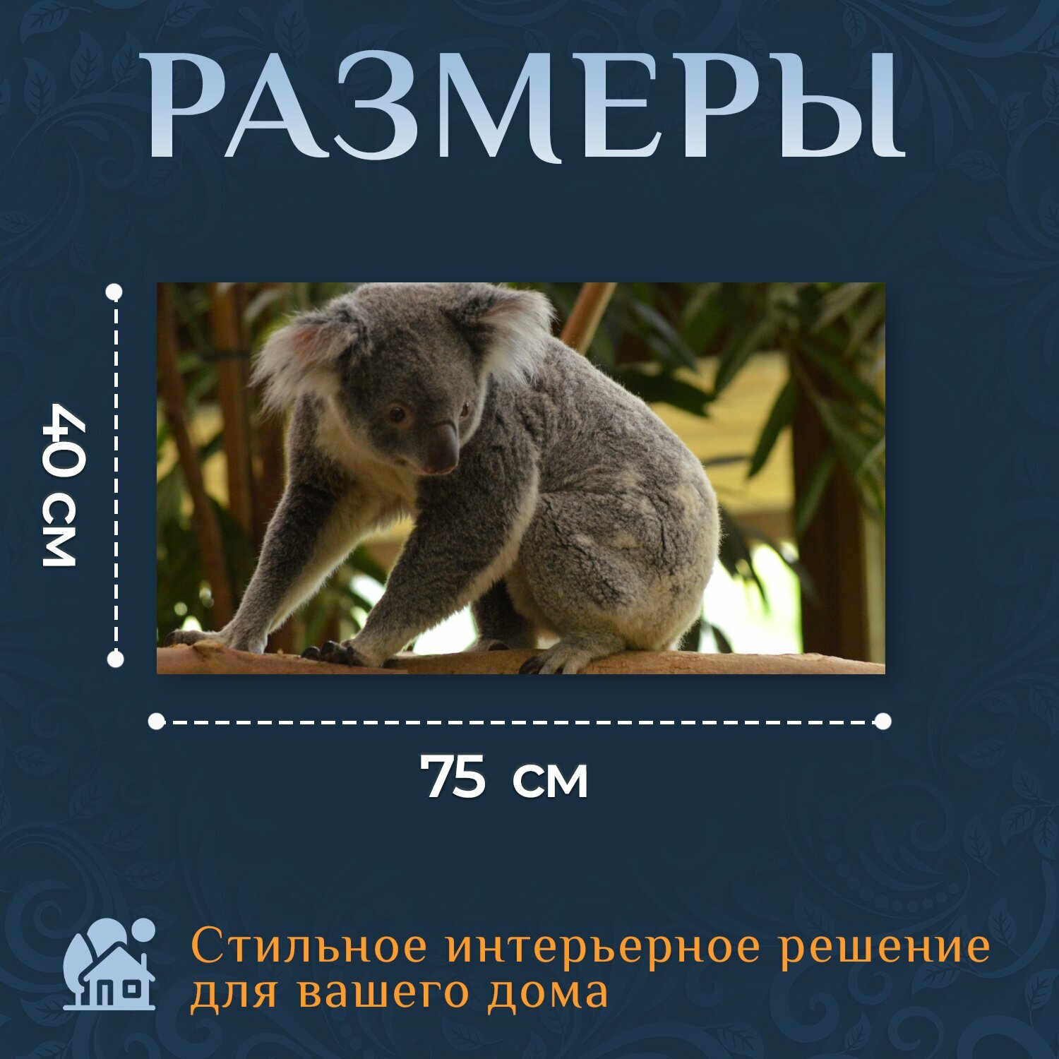 Картина на холсте "Коала, серый, мех" на подрамнике 75х40 см. для интерьера интересное:
