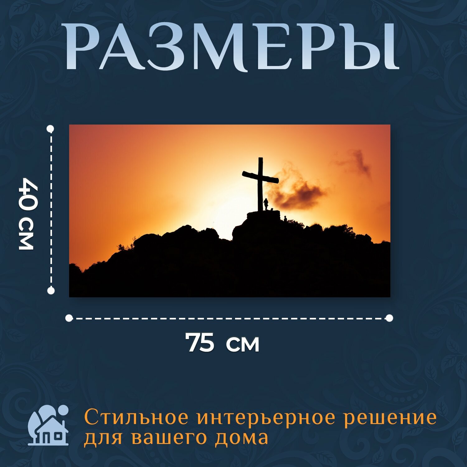 Картина на холсте "Пересекать, холм, заход солнца" на подрамнике 75х40 см. для интерьера интересное: