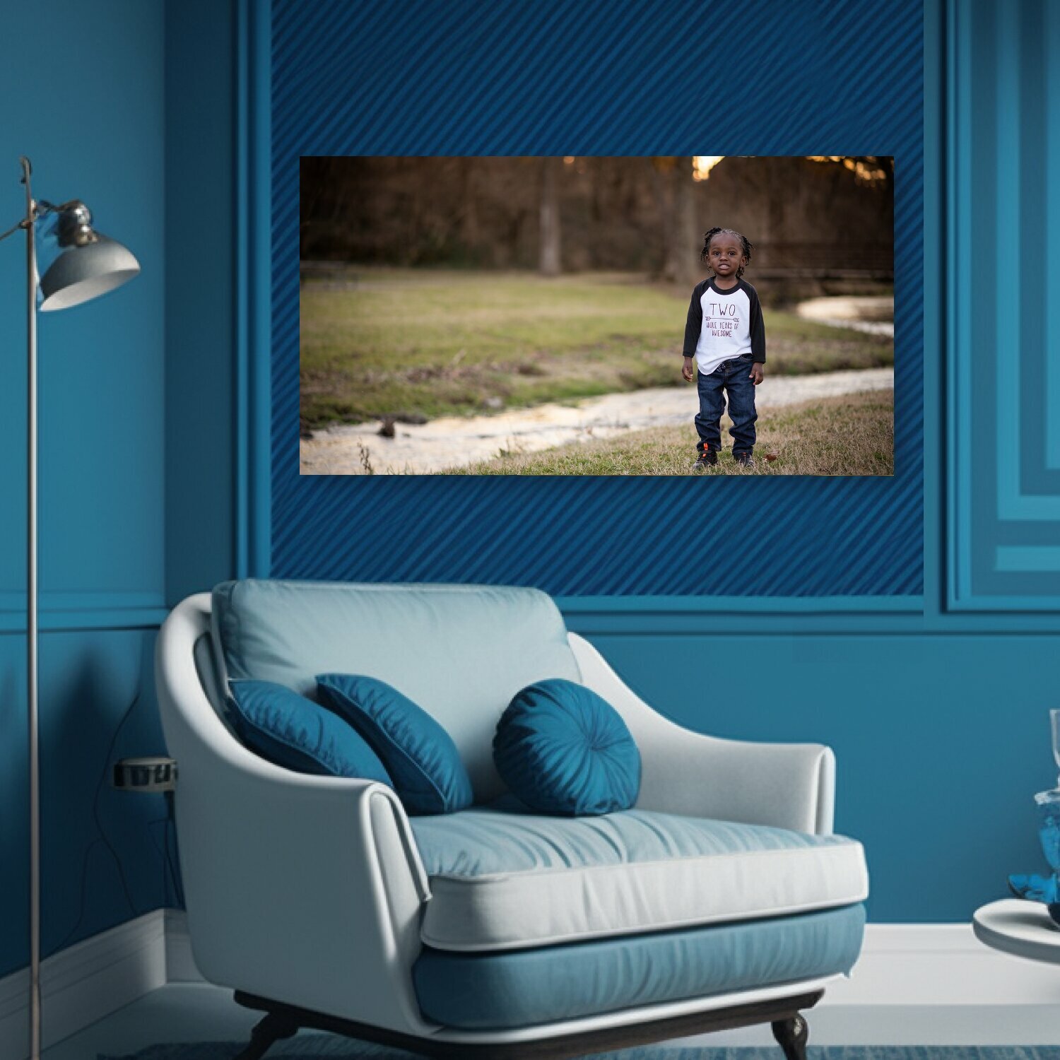 Купить Картина на холсте "Мальчик, ребенок, ручей" на подрамнике 75х40 см. для интерьера