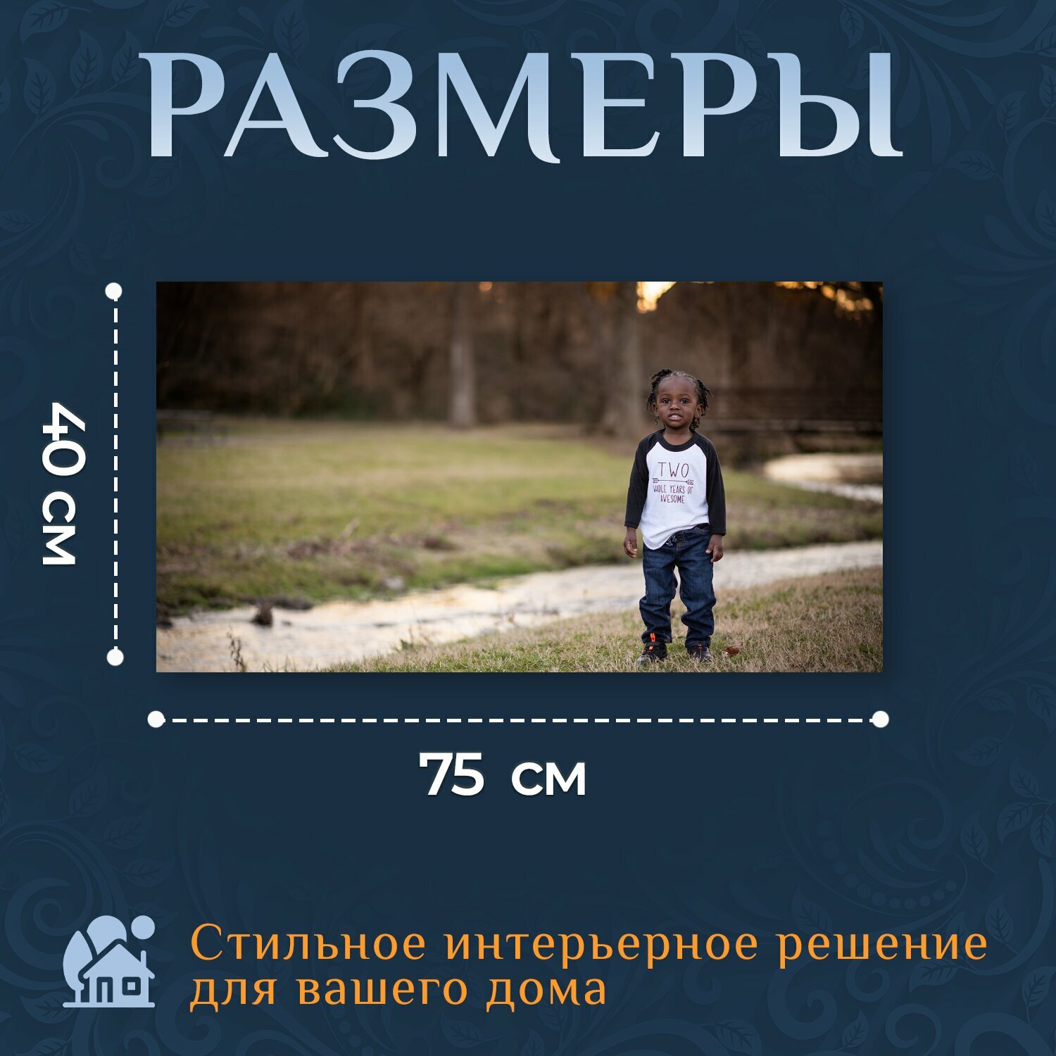 Картина на холсте "Мальчик, ребенок, ручей" на подрамнике 75х40 см. для интерьера интересное: