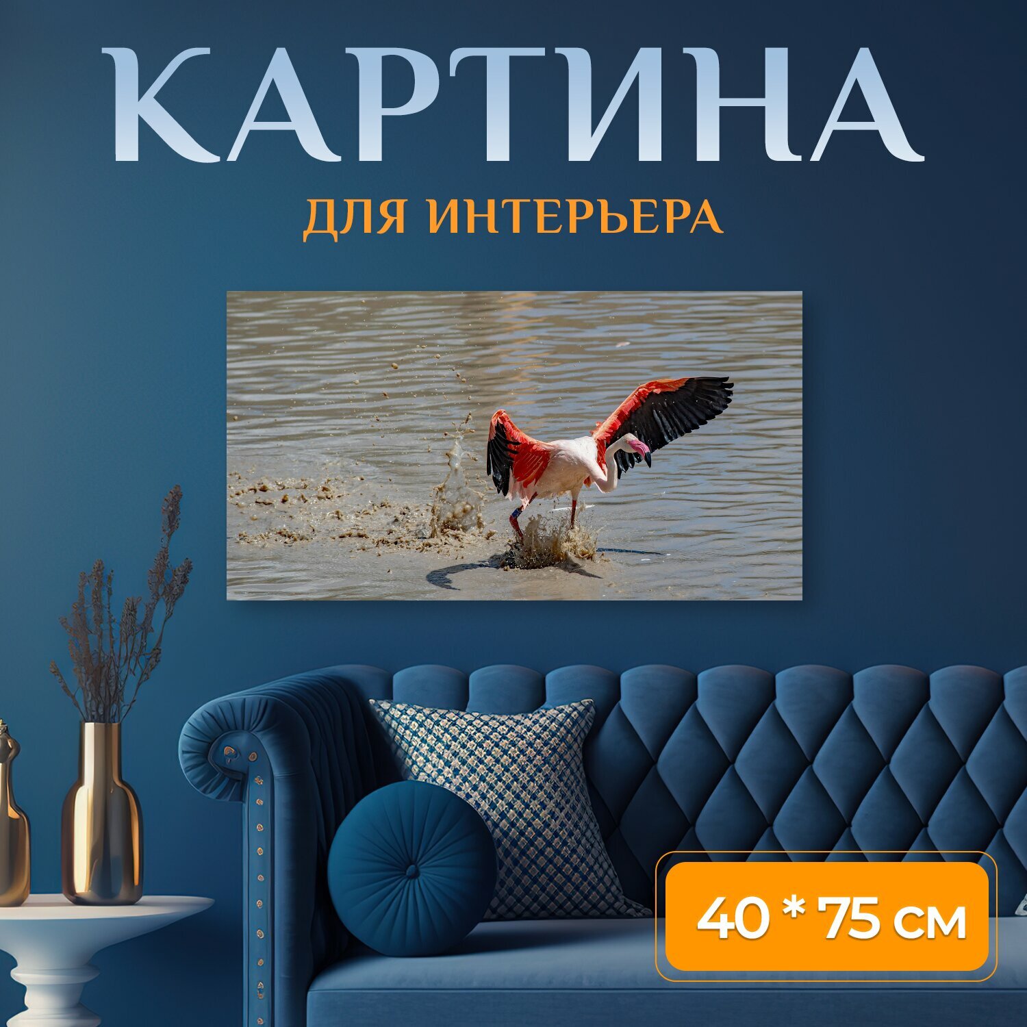 Картина на холсте "Фламинго, птица, розовый" на подрамнике 75х40 см. для интерьера интересное: