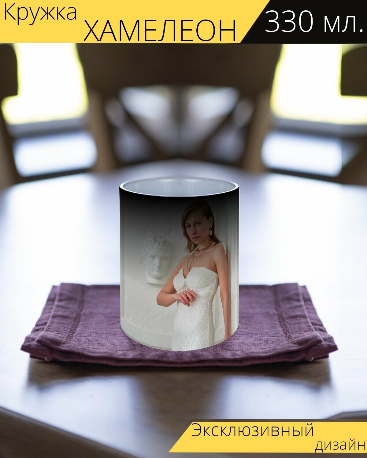 Кружка хамелеон с принтом "Свадебное платье, невеста, столбец" 330 мл. интересное: