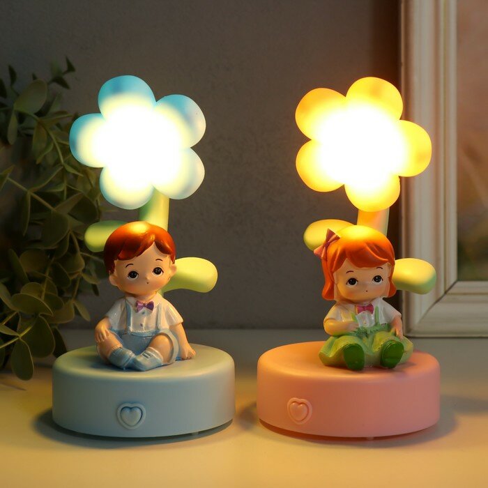 Сувенир полистоун свет "Малыш/Малышка у цветка" микс 14,5*8*8см интересное: