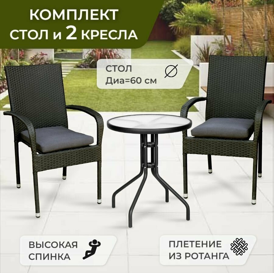Набор садовой мебели, Садовая мебель для дачи, Комплект садовой мебели из искусственного ротанга (стол круглый D60 см., 2 кресла) интересное: