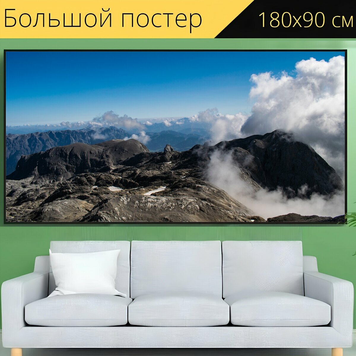 Большой постер "Альпы, горы, облака" 180 x 90 см. для интерьера интересное: