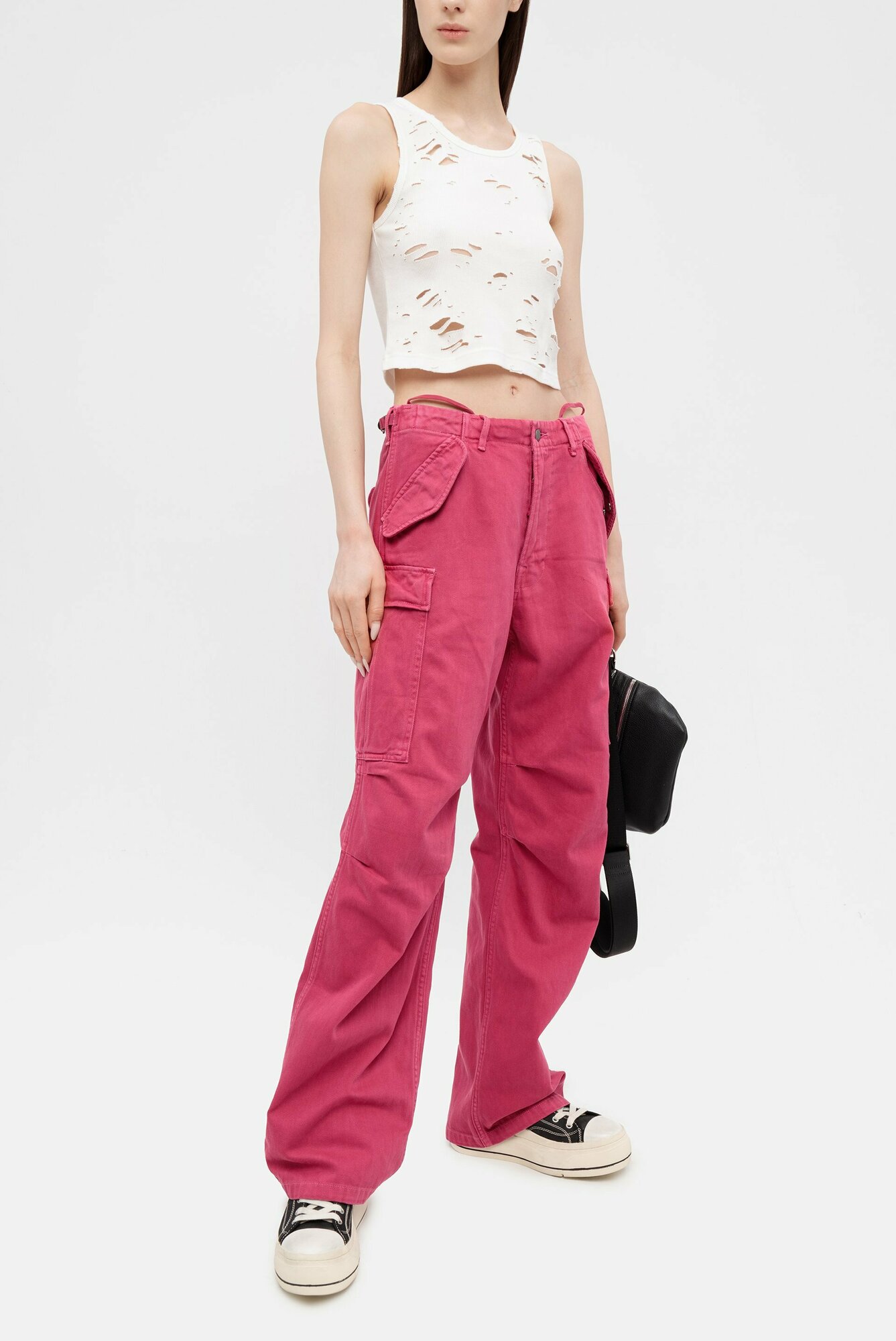 Джинсы Denimist wide leg cargo pant vibrant pink для женщин цвет розовый размер 28 интересное: