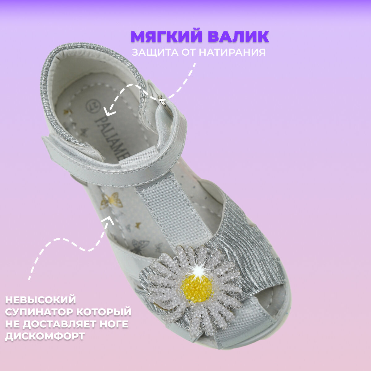 Купить Сандалии детские для девочки праздничные серебристые 30