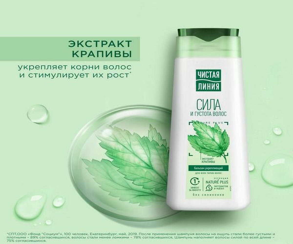 Чистая линия Бальзам для волос укрепляющий сила и густота для всех типов с экстрактом крапивы 380мл / уход за волосами