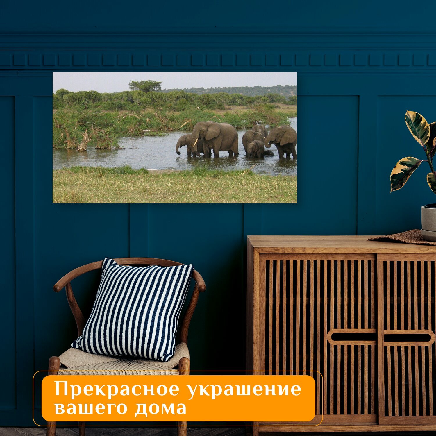 Купить Картина на холсте "Слоны, животные, дикая природа" на подрамнике 75х40 см. для интерьера